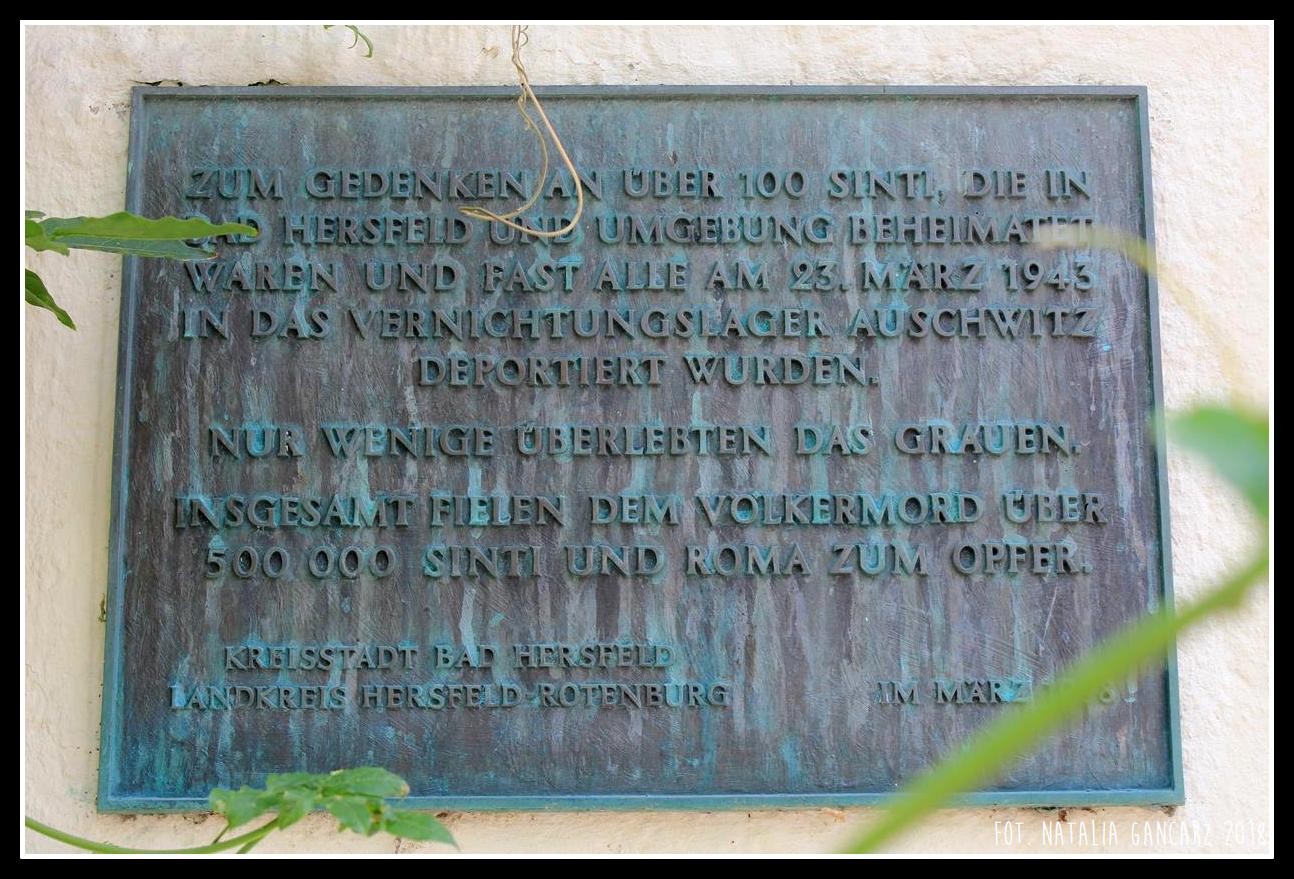 Tablica została wmurowana w 55. rocznicę deportacji setki Cyganów z Bad Hersfeld i powiatu do obozu zagłady Auschwitz.
