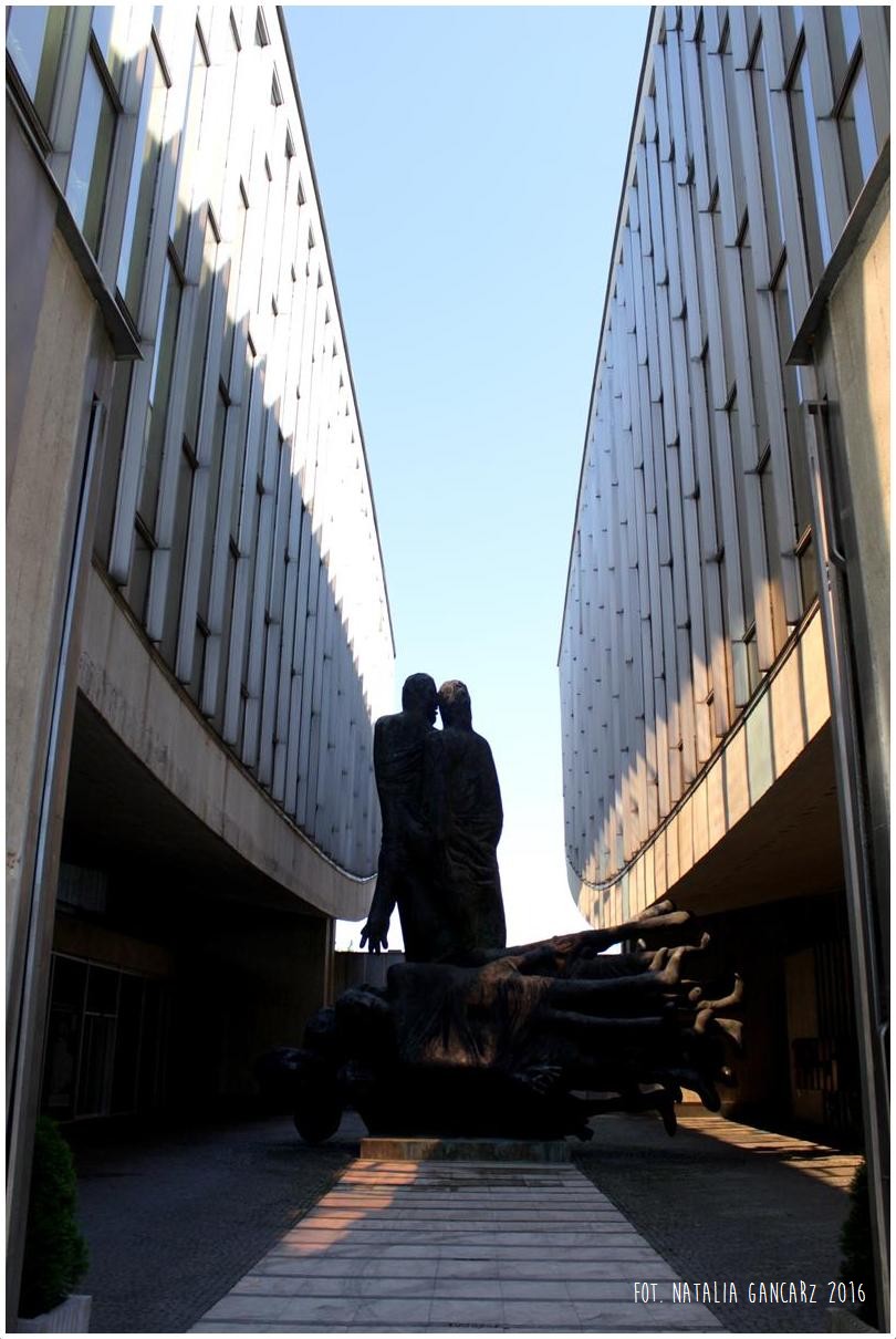 - „Kubus” – prostopadłościan wmurowany symetrycznie do takiego samego upamiętniającego żydowskie ofiary II wojny światowej.