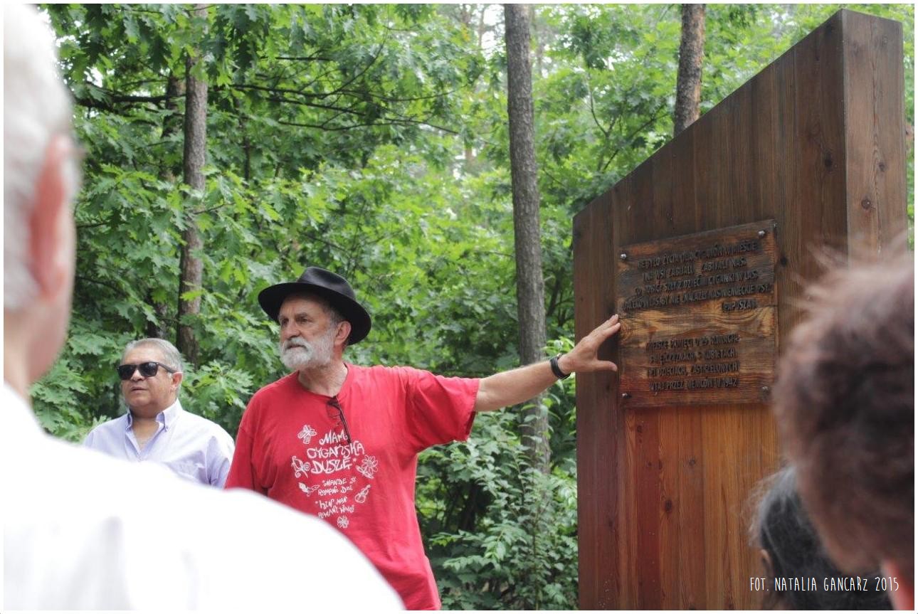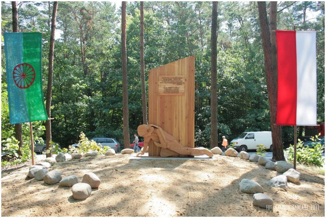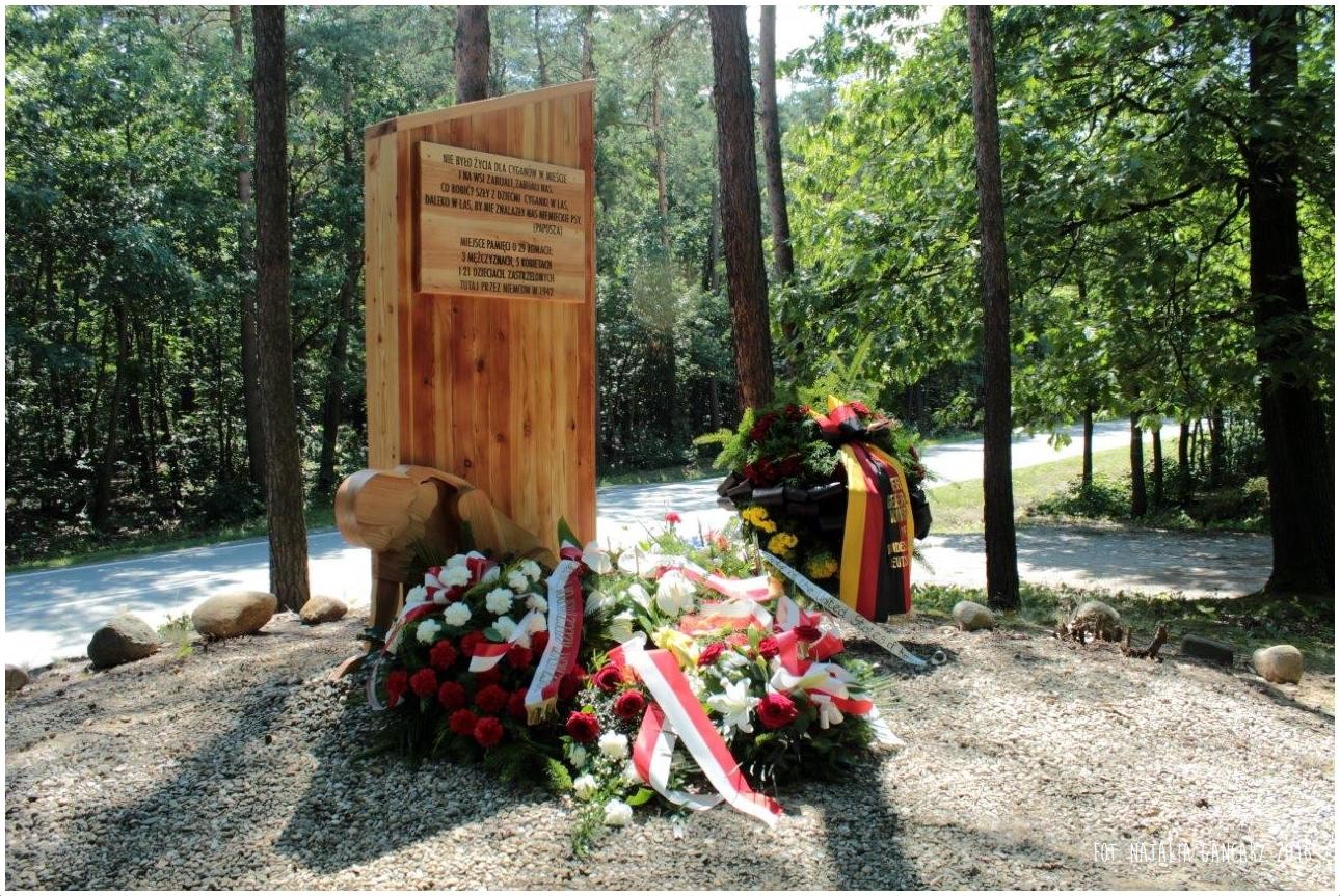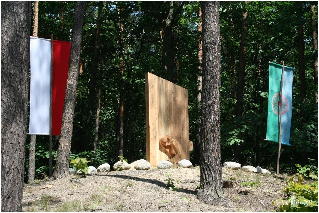 Nie było życia dla Cyganów w mieście / i na wsi zabijali, zabijali nas. / Co robić? Szły z dziećmi Cyganki w las, / daleko w las, by nie znalazły nas niemieckie psy. / (Papusza) // Miejsce pamięci o 229 Romach: / 3 mężczyznach, 5 kobietach / i 21 dzieciach, / zastrzelonych tutaj przez Niemców w 1942