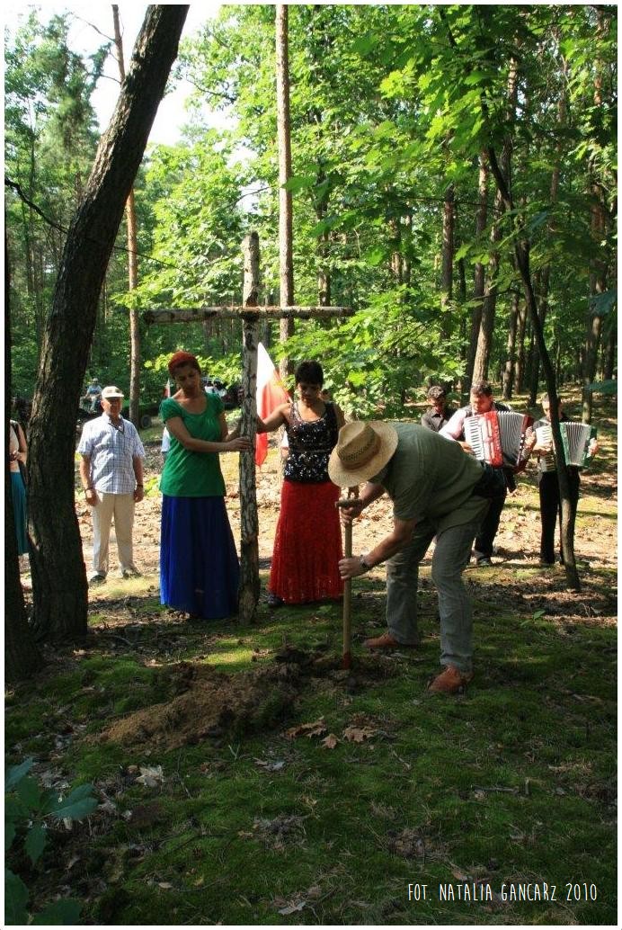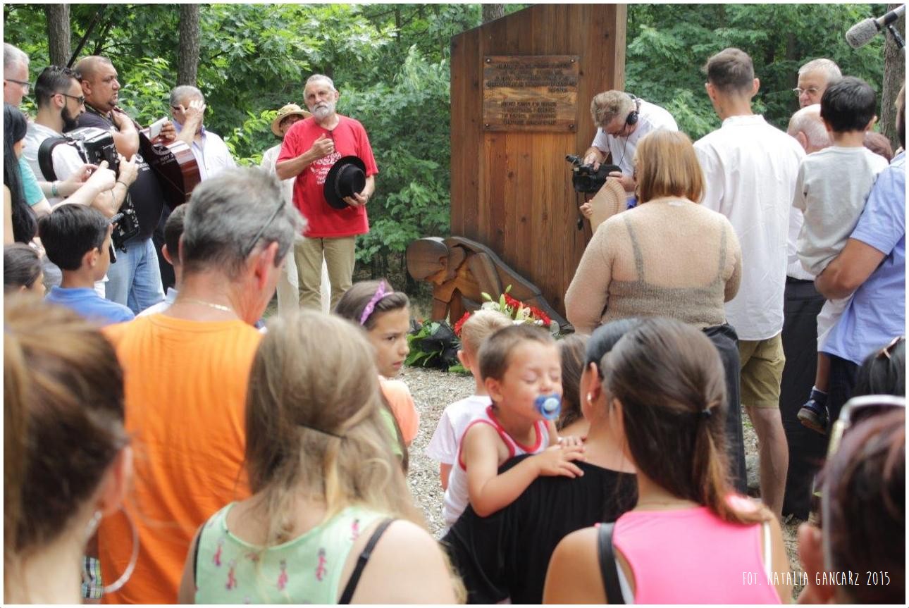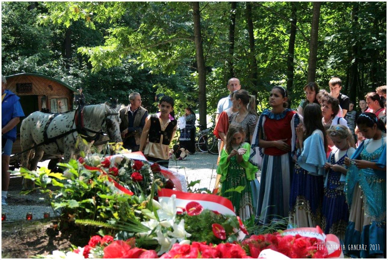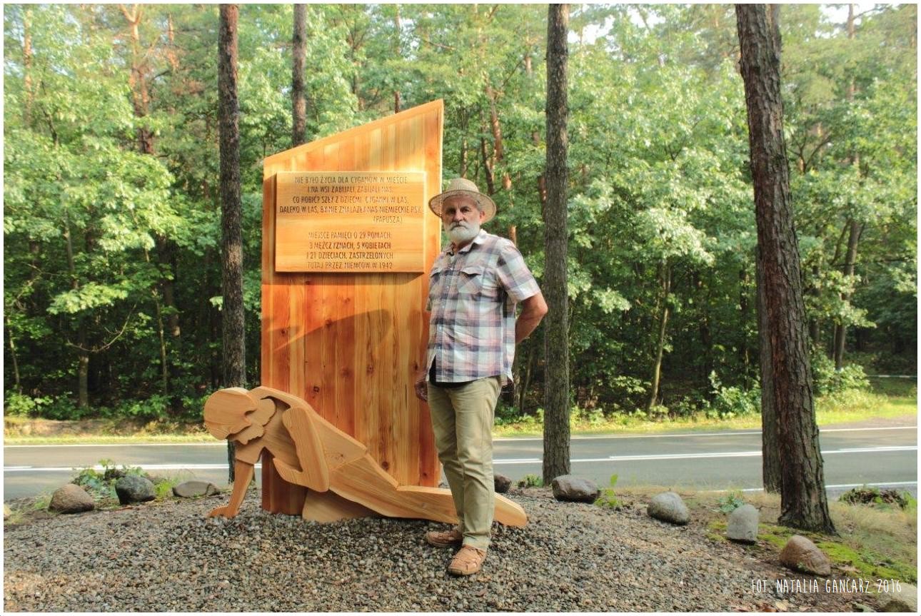 Nie było życia dla Cyganów w mieście / i na wsi zabijali, zabijali nas. / Co robić? Szły z dziećmi Cyganki w las, / daleko w las, by nie znalazły nas niemieckie psy. / (Papusza) // Miejsce pamięci o 229 Romach: / 3 mężczyznach, 5 kobietach / i 21 dzieciach, / zastrzelonych tutaj przez Niemców w 1942