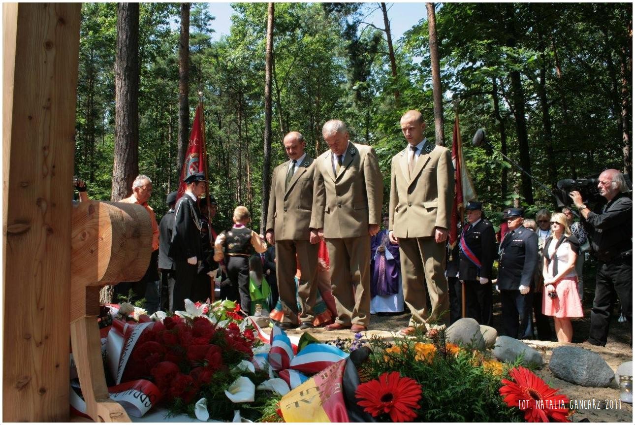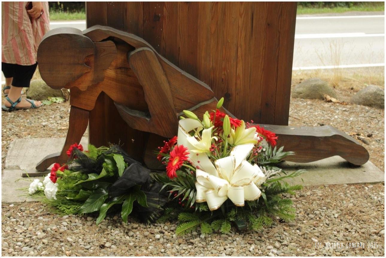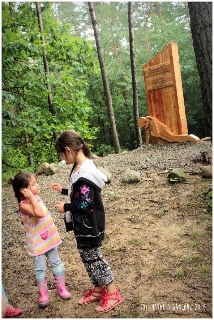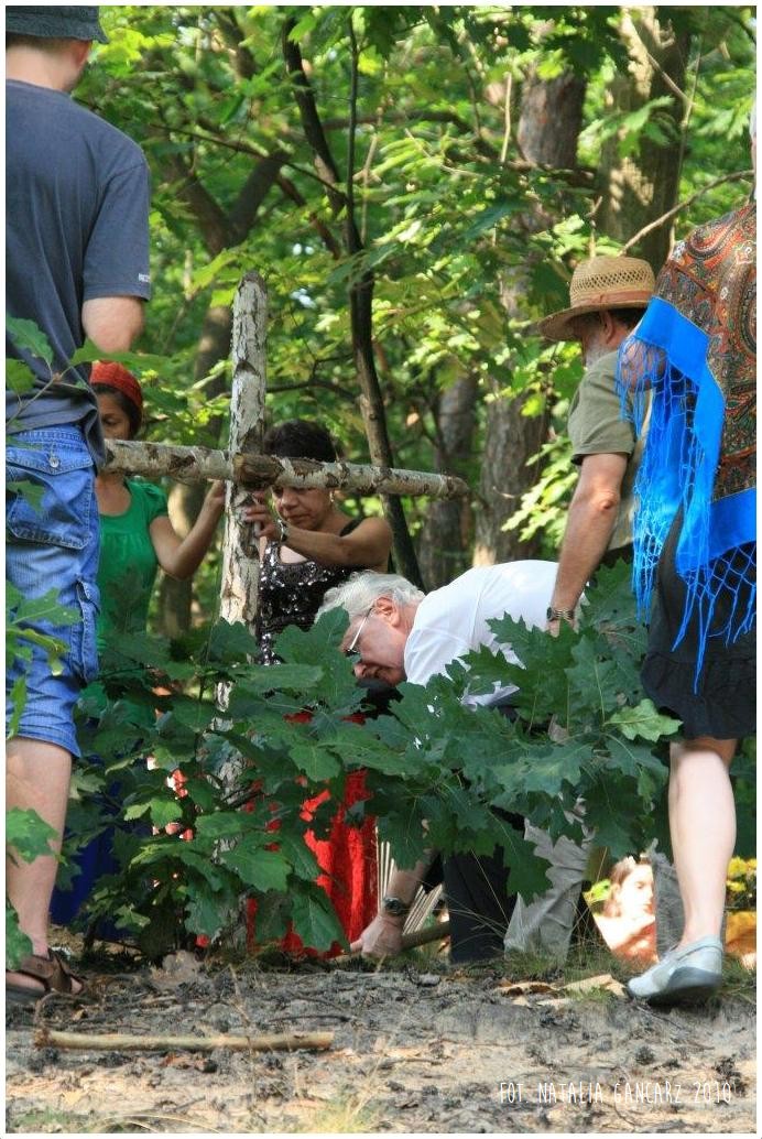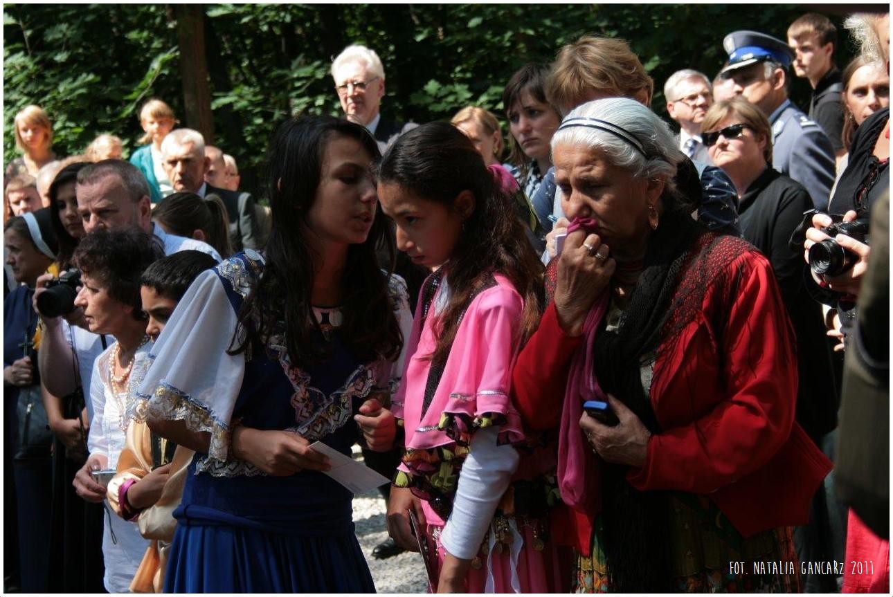 Nie było życia dla Cyganów w mieście / i na wsi zabijali, zabijali nas. / Co robić? Szły z dziećmi Cyganki w las, / daleko w las, by nie znalazły nas niemieckie psy. / (Papusza) // Miejsce pamięci o 229 Romach: / 3 mężczyznach, 5 kobietach / i 21 dzieciach, / zastrzelonych tutaj przez Niemców w 1942