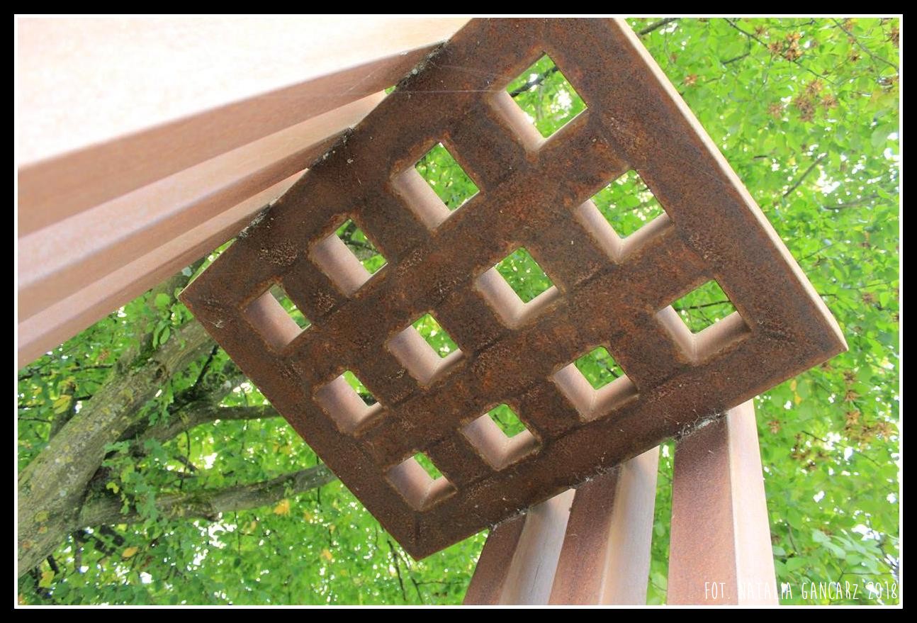 W przyszłości jest ukryta przeszłość! Powstaje pomnik – upamiętnienie. Tego, co było, aby pamiętać na przyszłość. // Forma to zadanie. To znaczy, aby nadać kształt, próbowałem zbudować symboliczną ciągłość: 6 poprzeczek oznacza 6 lat wojny, bycie więźniem symbolizuje krata.