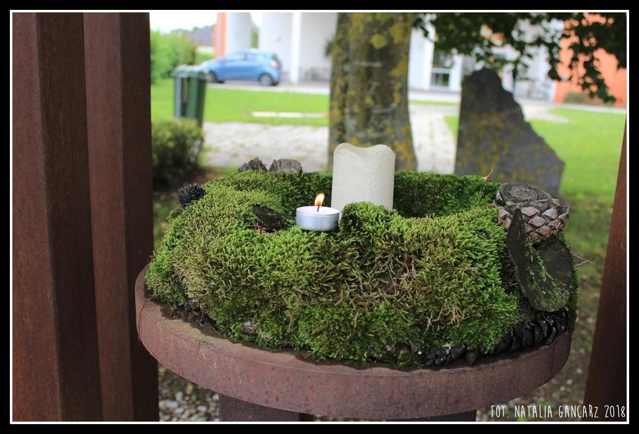Ein ALTAR – an dem Wir zu bestimmten Zeiten / AN DENKEN können, / An eine Zukunft die uns wirklich Frieden gibt. / DENK MAL nach, EINEN PLATZ, / WO WIR STANDPUNKTE ZU STANDORTE BILDEN / EINEN PLATZ WO WIR MENSCHEN / DEM MENSCHEN BEGENGEN! //