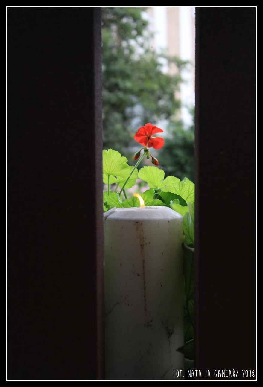 Pomnik jest konstrukcją z blachy kortenowskiej, na którą składa się sześć kwadratowych słupków, połączonych u dołu na kształt litery U, zwieńczonych potężną kratą u góry. Całość tworzy rodzaj okna lub drzwi. Na dole znajduje się platforma, na której umieszczono całą konstrukcję. Z centralnej części platformy, wewnątrz „okna”, na dwóch kwadratowych, niewysokich słupkach umieszczono talerz, na którym rośnie mech, posadzony w kształt wieńca, wewnątrz którego zamocowano świecę (elektryczną lub na baterię).
