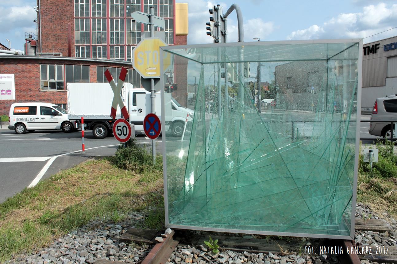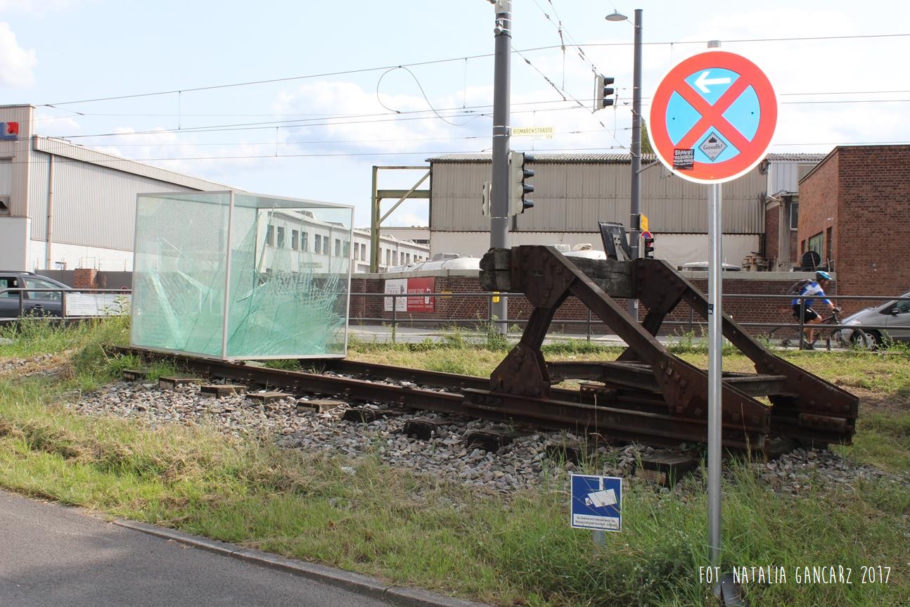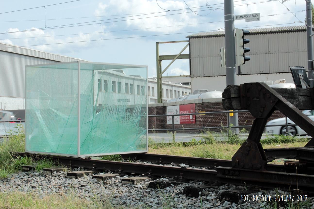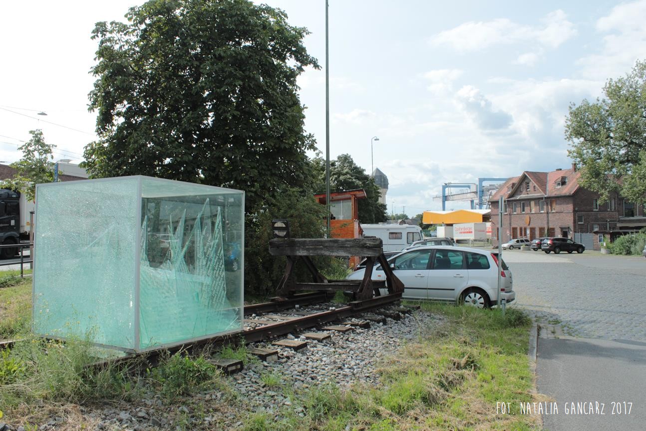 „Akwarium” stoi na szynach, które zakończone są buforem kolejowym. Według artystów bufor symbolizuje koniec życia ofiar, tory – ich drogę do obozu a odłamki szkła – rozbite, przerwane życie.