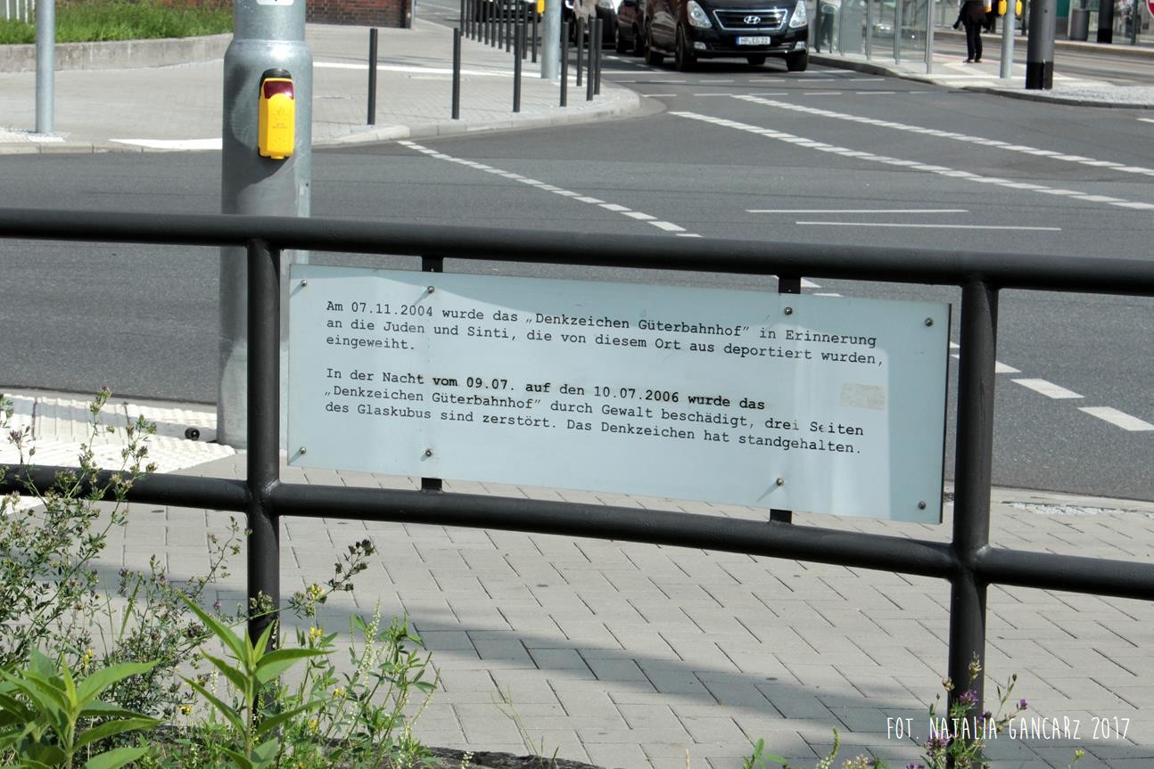 W dniu 7.11.2004 otwarto miejsce pamięci „Denkzeichen Güterbahnhof”, tu, skąd deportowano Żydów i Sinti. // W nocy z 9 na 10.07.2006 pomnik ten został zniszczony przez chuliganów, trzy ściany rozbite. Pomnik odnowiono.