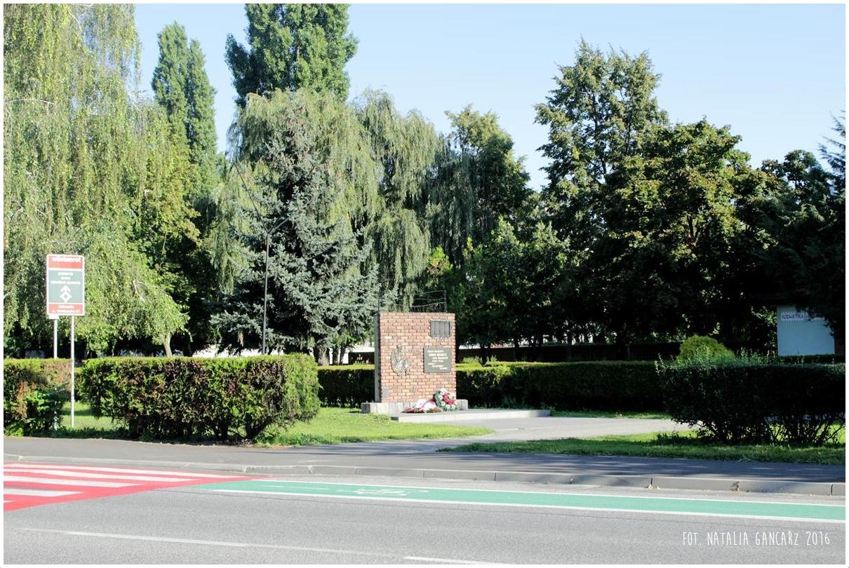 Hlavna za rondem w kierunku Komarna – po lewej, pomnik widoczny z ulicy