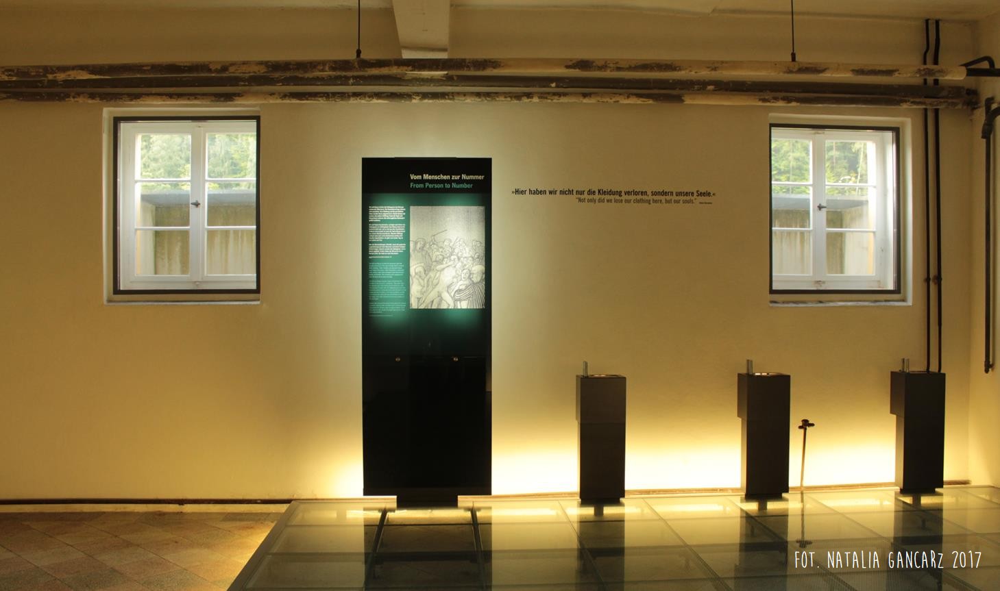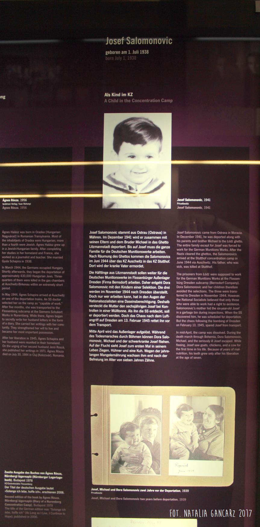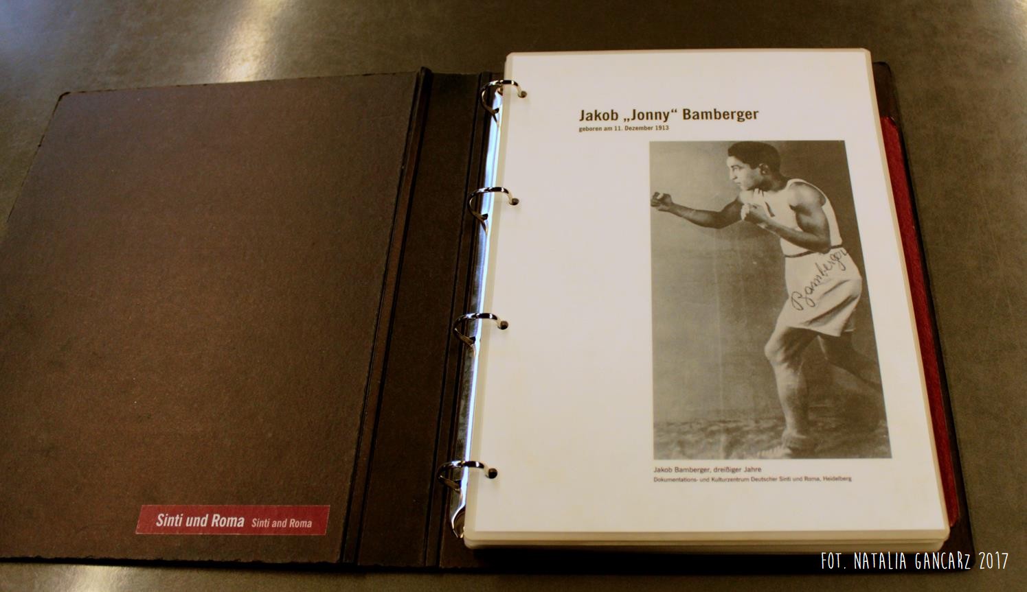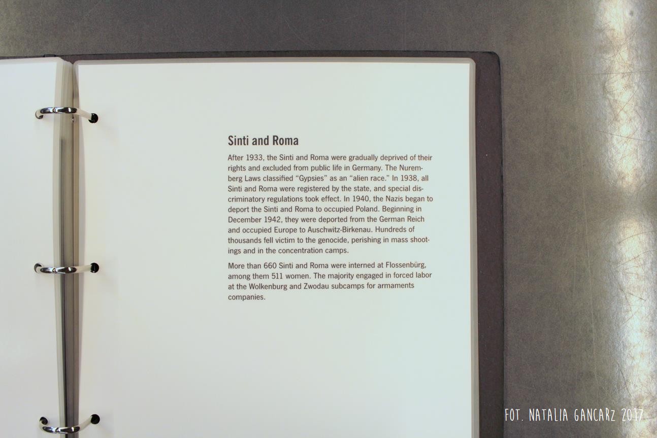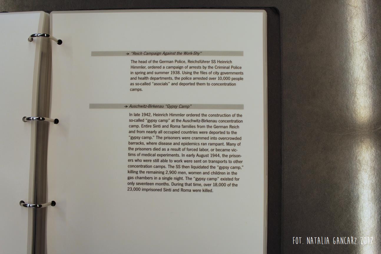 Po drugie – nieopodal planszy ze Stojanem Lassischem znajduje się wydzielona przestrzeń, w której można usiąść i postudiować dzieje przedstawicieli poszczególnych narodów, więzionych w obozie. Na „Regale Pamięci” ustawiono księgi poświęcone wybranym, znanym z nazwiska i historii, więźniom obozu, opisanym wedle narodowości. Spośród Romów odnajdujemy tutaj historie ocalonych: Jacoba „Johna” Bambergera (boksera; jednego z 44 Sintów, na których dokonywano eksperymenty medyczne w KL Dachau), Hermanna Herzberga (jeden ze strajkujących w 1980 r. w Dachau), Luise Mai (jedna z 39 cygańskich dzieci, które zostały wywiezione z sierocińca w Mulfingen 1938-44; tylko czwórka, wśród nich Luise – przeżyła) i Anna Mettbach.