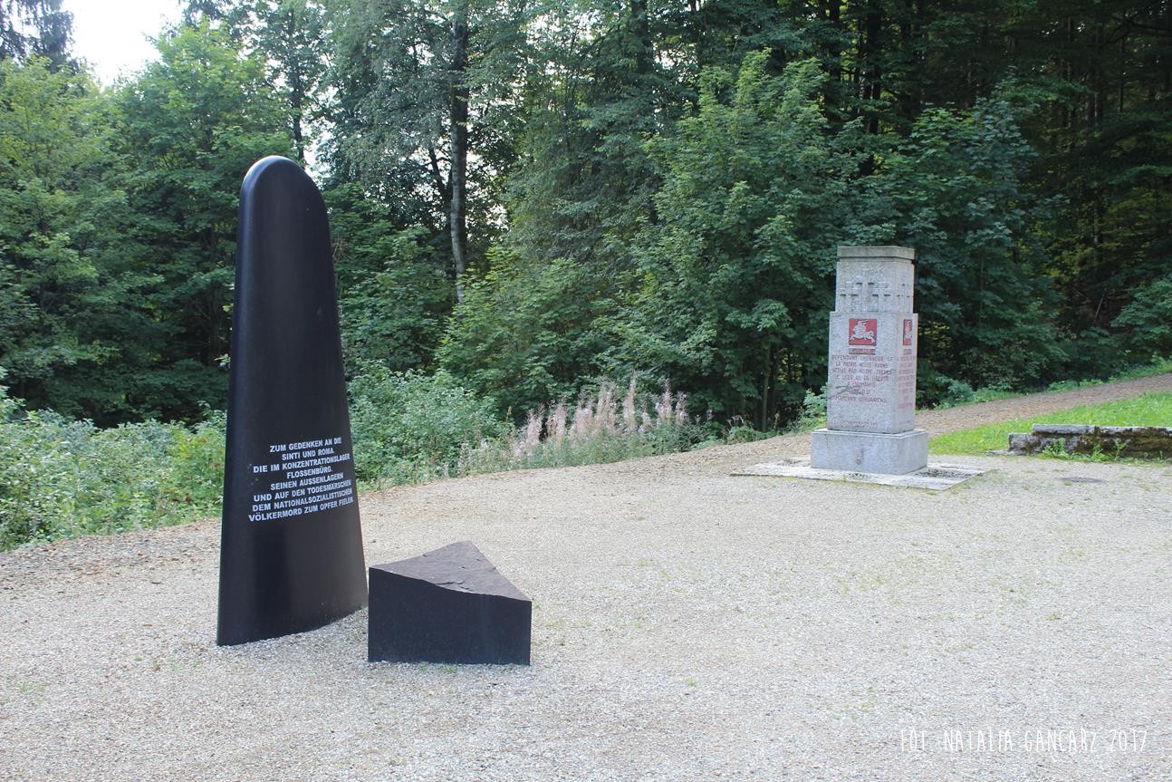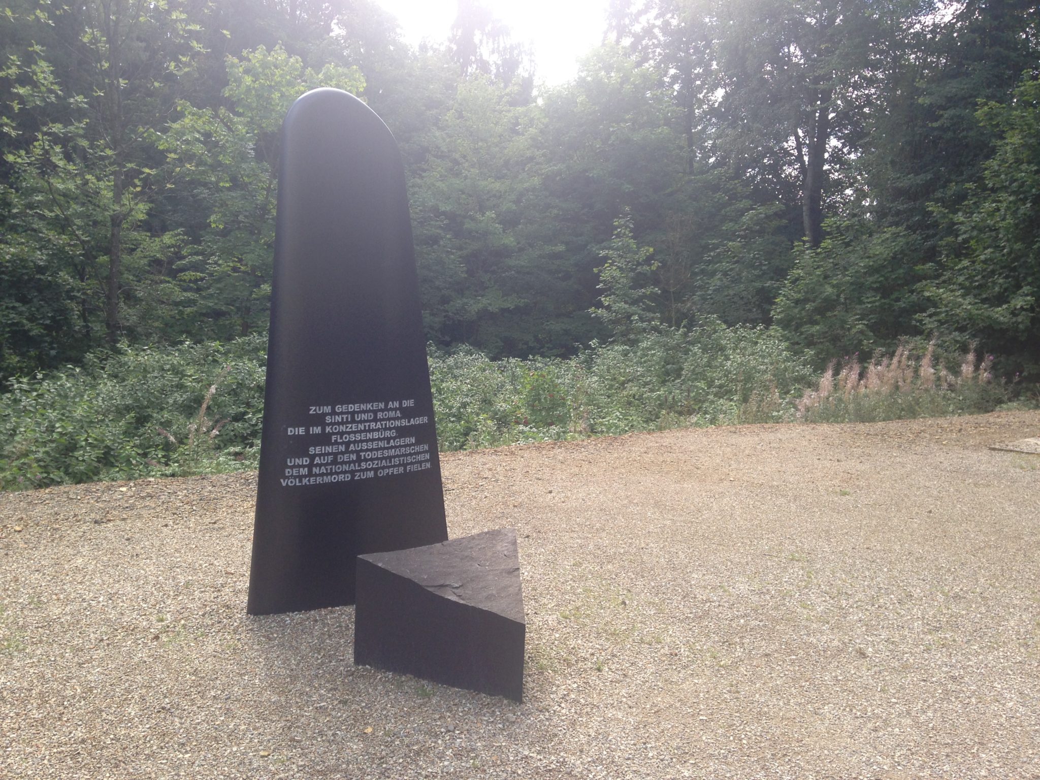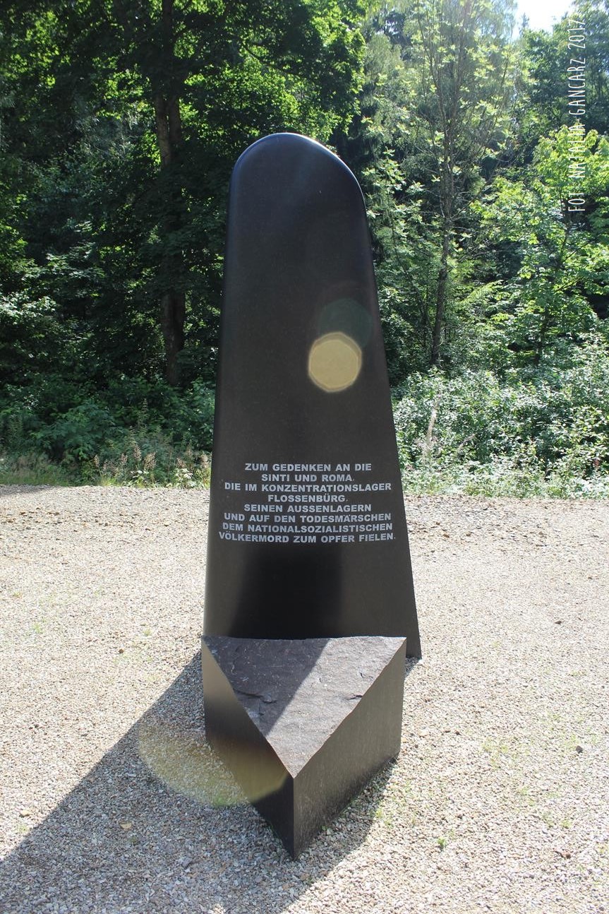 ZUM GEDENKEN AN DIE / SINTI UND ROMA, / DIE IN KONZENTRATIONSLAGER / FLOSSENBÜRG, / SEINEN AUSSENLAGERN / UND AUF DEN TODESMÄRSCHEN / DEM NATIONALSOZIALISTISCHEN / VÖLKERMORD ZUM OPFER FIELEN.