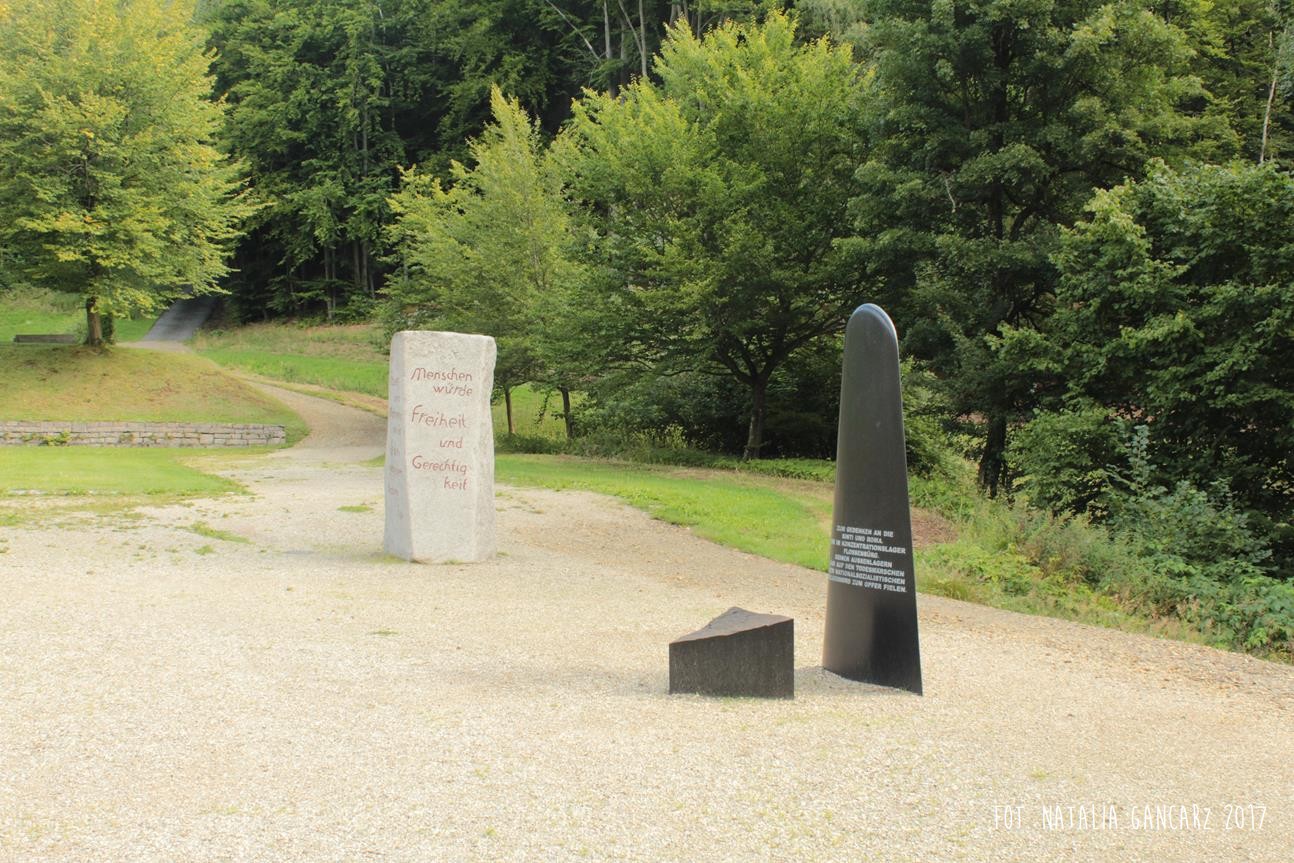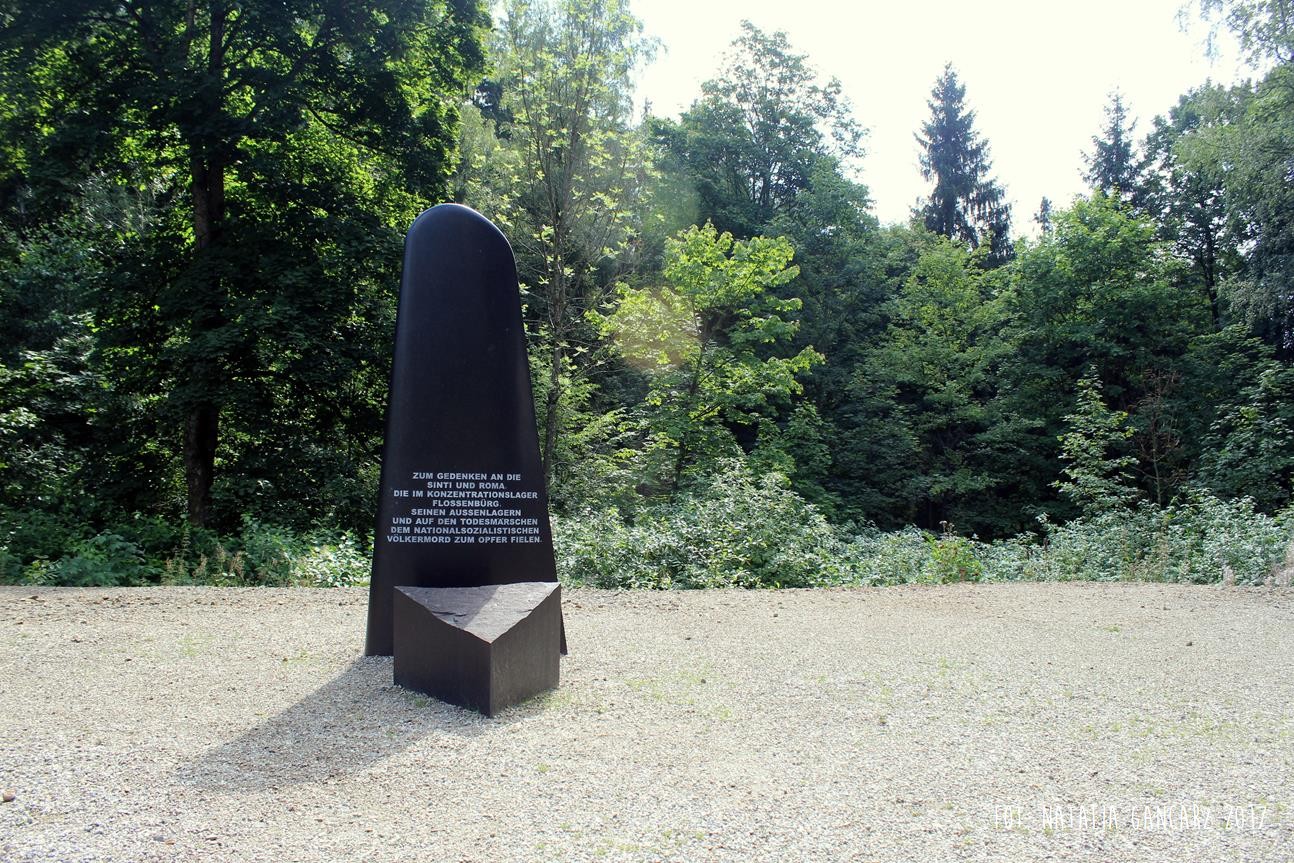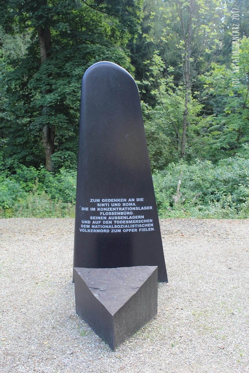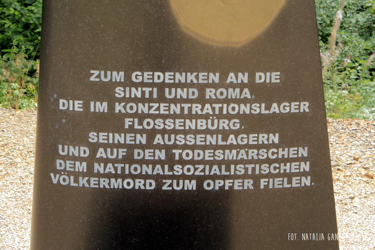 ‘Ku pamięci / Sinti i Romów, / ofiar ludobójstwa / w obozie koncentracyjnym Flossenbürg, / jego podobozach / oraz zmarłych podczas Marszu Śmierci’