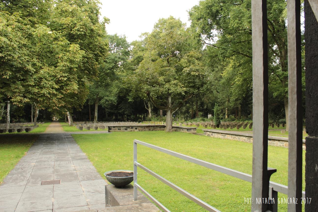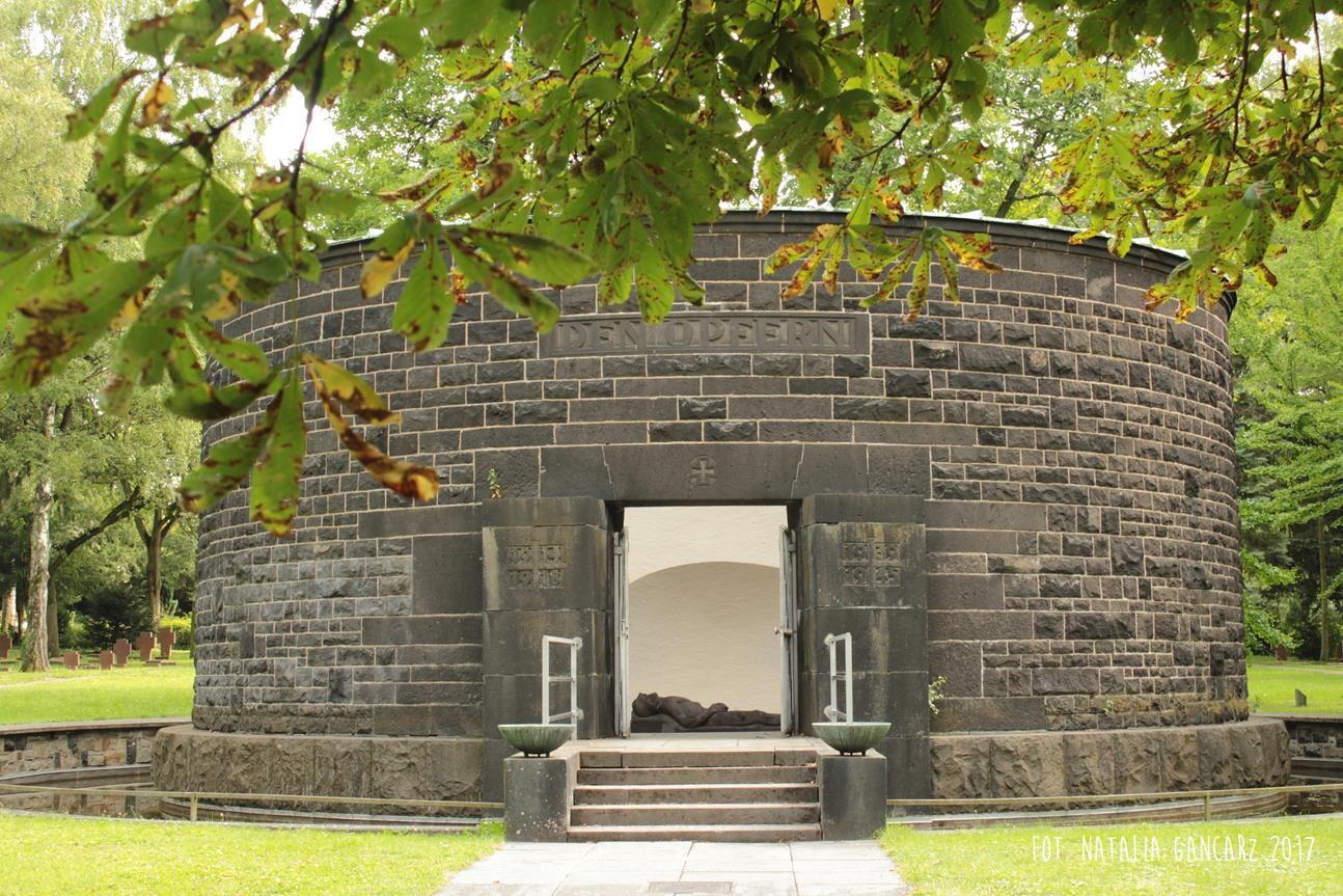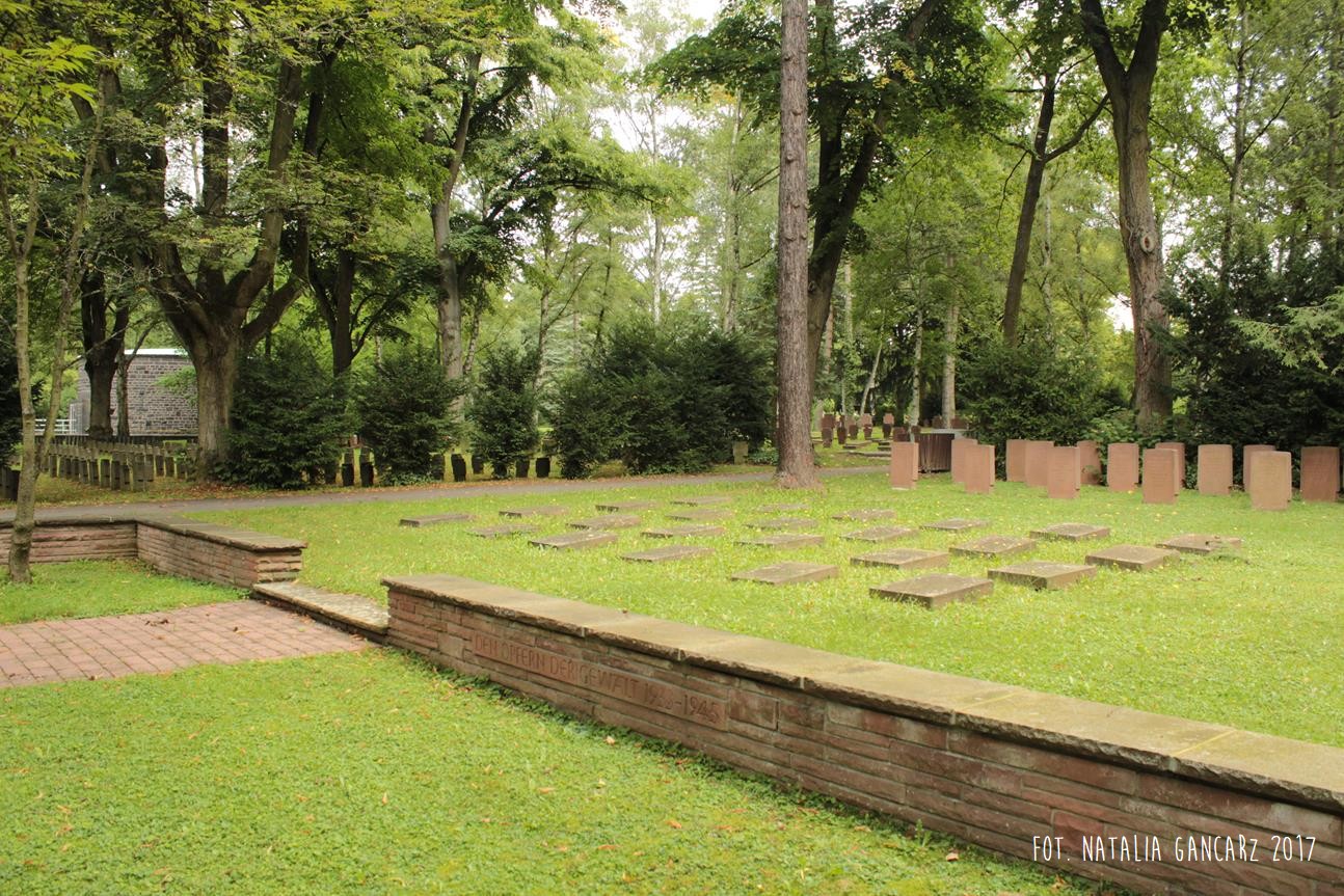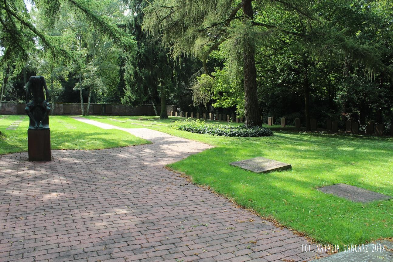 Na cmentarzu centralnym Gewann I we Frankfurcie nad Menem znajduje się duża przestrzeń poświęcona pamięci pomordowanym w czasie II wojny światowej. Na cmentarzu znajdują się szczątki 539 Niemców, którzy zginęli w obozach koncentracyjnych, zakładach karnych lub szpitalach psychiatrycznych, 617 jeńców wojennych i robotników przymusowych z byłego Związku Radzieckiego, 126 polskich jeńców wojennych i robotników przymusowych, 27 niezidentyfikowanych zmarłych i 175 zabitych, głównie z byłej Jugosławii i krajów bałtyckich. Setki jednakowych grobów, mauzoleum oraz – w samym centrum rzeźba Hioba (z brązu) na postumencie z piaskowca (postument przygotowany przez kamieniarzy cygańskich z Landau). Po lewej ręce Hioba znajdują się tablice osadzone prawie równo z gruntem. Bliższa Hioba ma charakter „ogólny”, wspomina bowiem „ofiary terroru 1933-1945”. Druga upamiętnia Romów i Sinti, którzy stali się ofiarami ludobójstwa nazistów. Napis w jęz. niemieckim.
