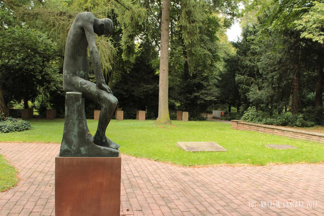 Po lewej ręce brązowej figury Hioba