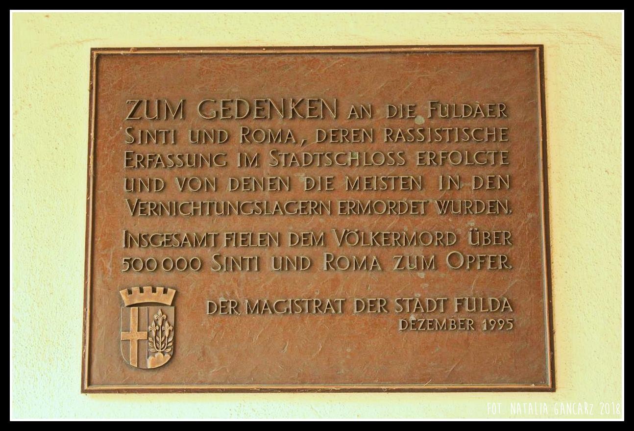 Tablica poświęcona pamięci Sinti i Romów z Fuldy oddaje cześć tym którzy byli więzieni w pałacu w Fuldzie, jak również innym 500 000 europejskich Cyganów europejskich, zamordowanych w czasie II wojny światowej.