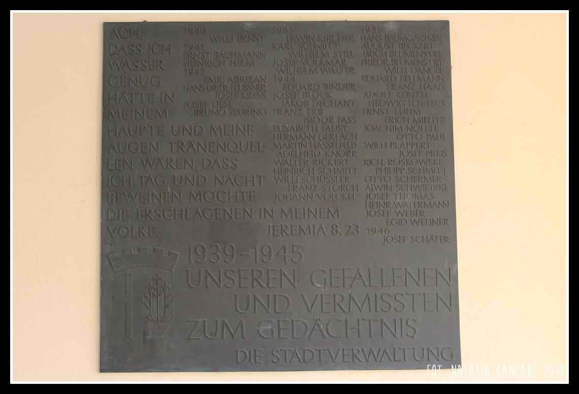 Wewnątrz bocznej bramy do pałacu w Fuldzie, prowadzącej na wewnętrzny dziedziniec (parking), od strony Schloßstraße – mieszczą się dwie tablice z brązu. Po prawej stronie mieści się wielka tablica, na której wypisano motto z biblijnej Księgi Jeremiasza („…”, Jer 8,23) oraz nazwiska mieszkańców miasta, którzy zginęli w latach 1939-45. Naprzeciwko, tj. na lewej ścianie wewnętrznej bramy – wmurowana jest porównywalnie niewielka tablica, która upamiętnia miejscowych Cyganów.