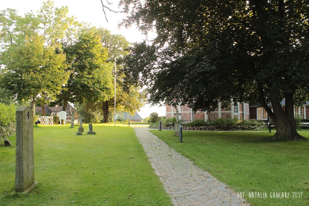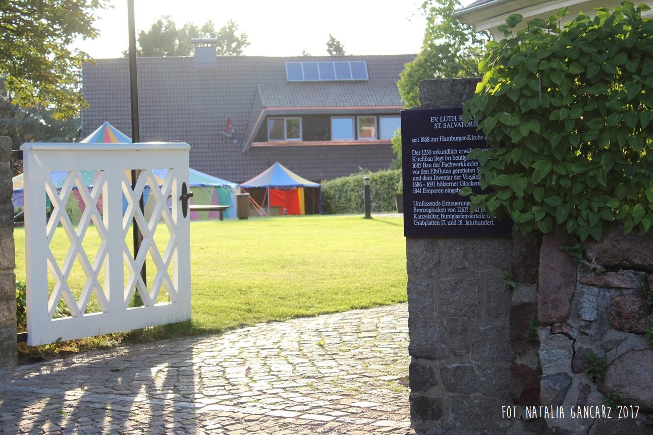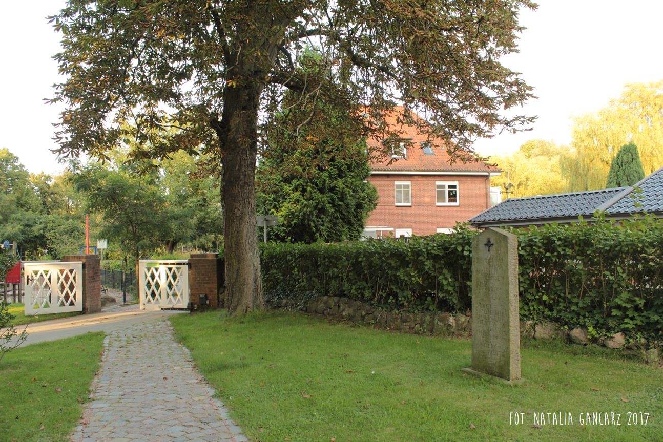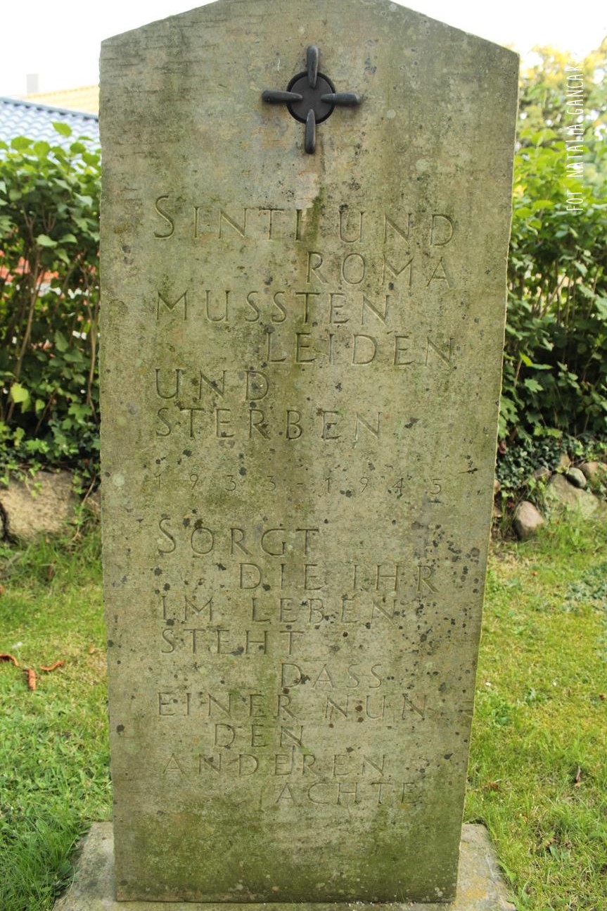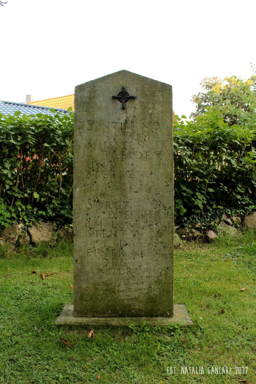 Wchodząc na teren kościelny parafii luterańskiej Św. Zbawiciela od strony ul. Kirchenstieg, tuż za białą furtką ogrodzenia natrafiamy na pomnik, poświęcony Romom i Sintom. Pomnik to kamienna płyta w formie stojącego nagrobka. Tekst, który jest na niej wycięty został przygotowany w jęz. niemieckim.