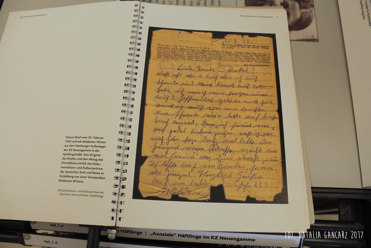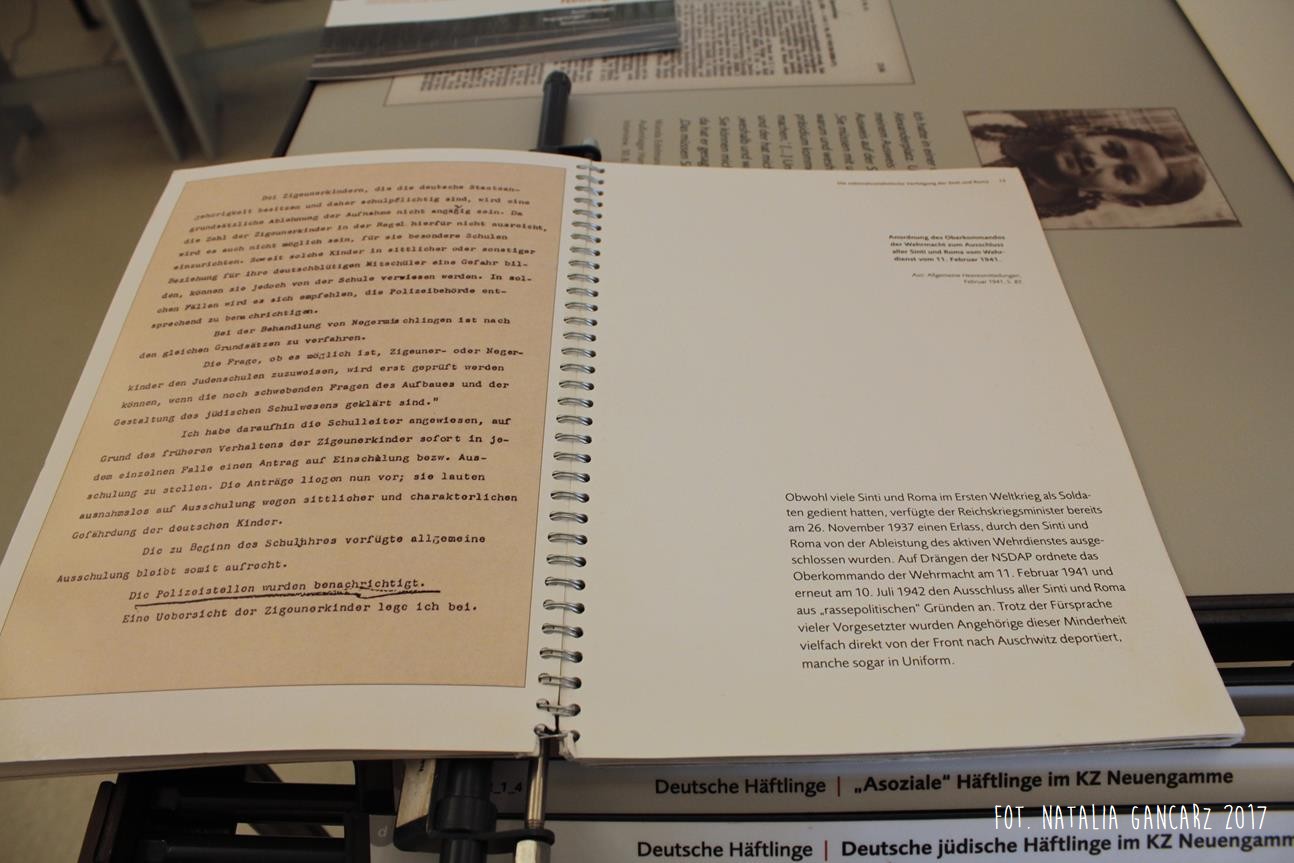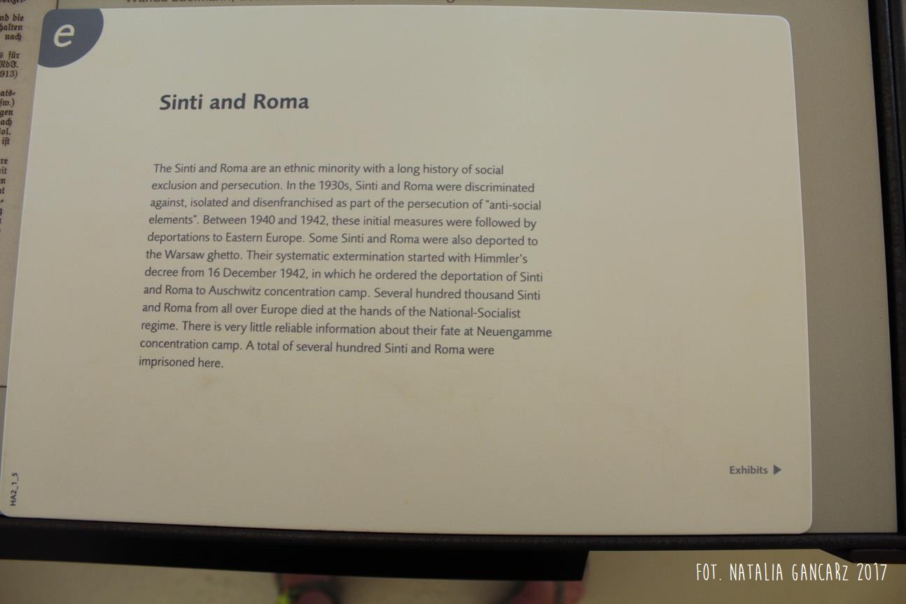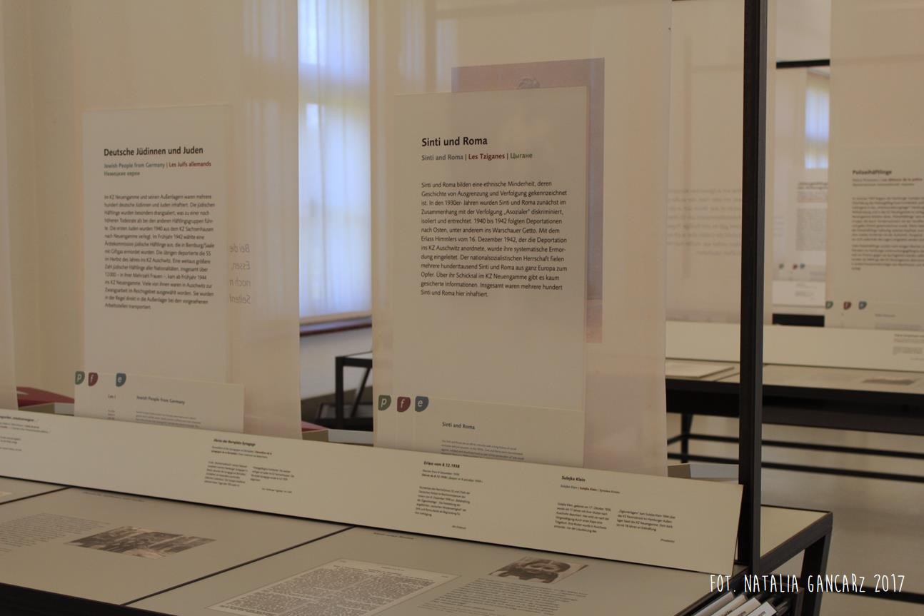 Na stałej wystawie „Traces of History: Neuengamme Concentration Camp 1938–1945 and Its Post-War History” (‘Ślady historii: Obóz koncentracyjny Neuengamme 1938-45 i jego dzieje powojenne’), znajdującej się w blokach 21-24 (później 25-28) znajduje się szereg istotnych informacji odnoszących się do Romów i Sintów więzionych w KL Neuengamme, w tym fotografie oraz dokumenty.