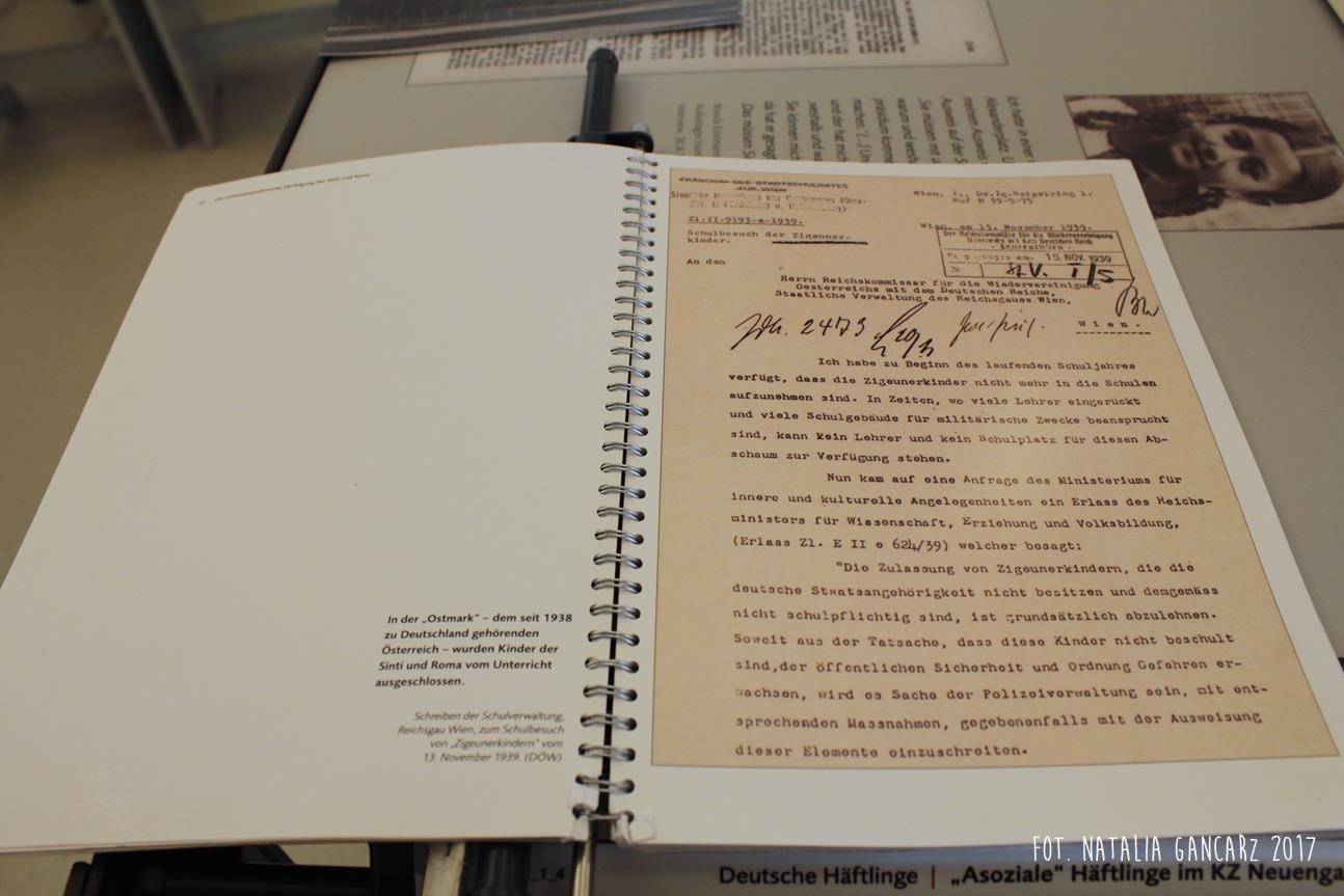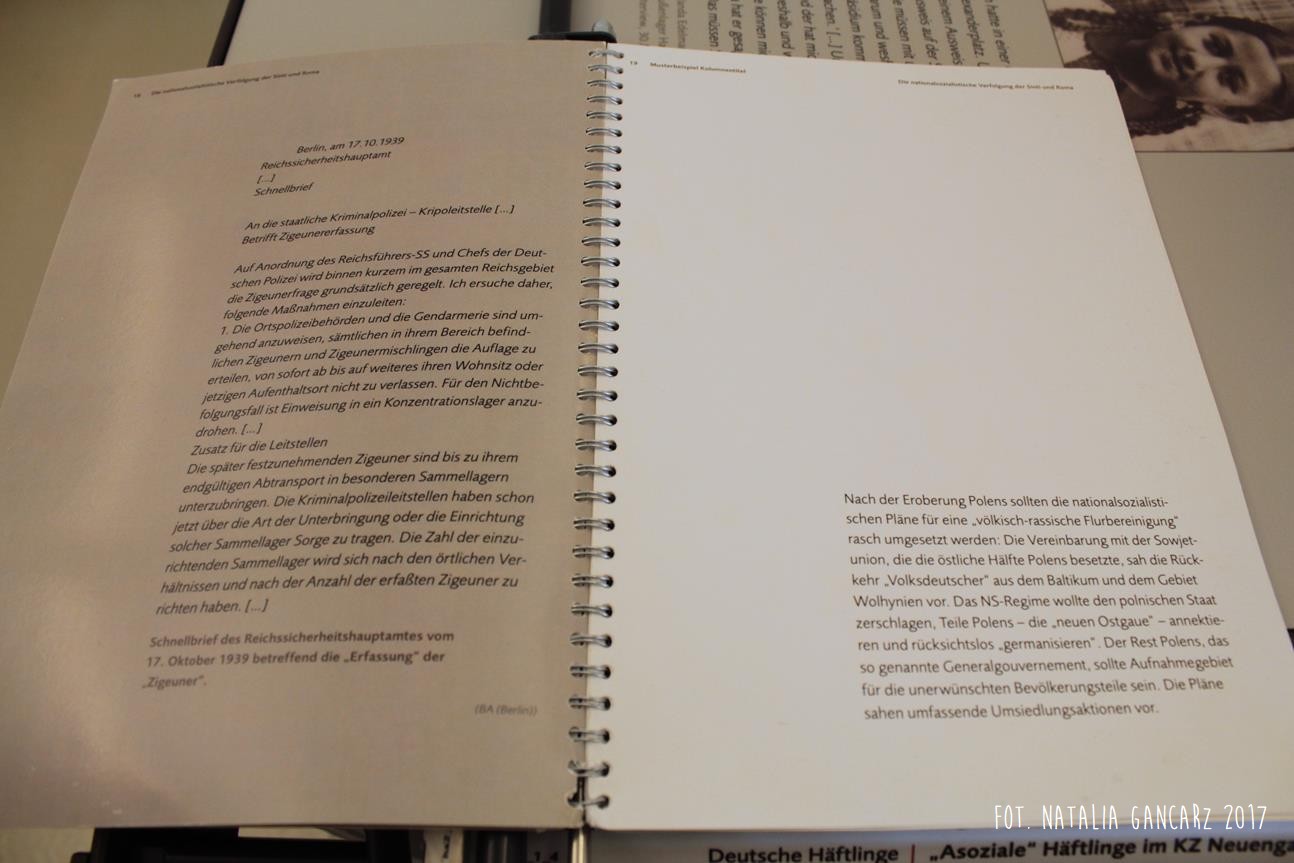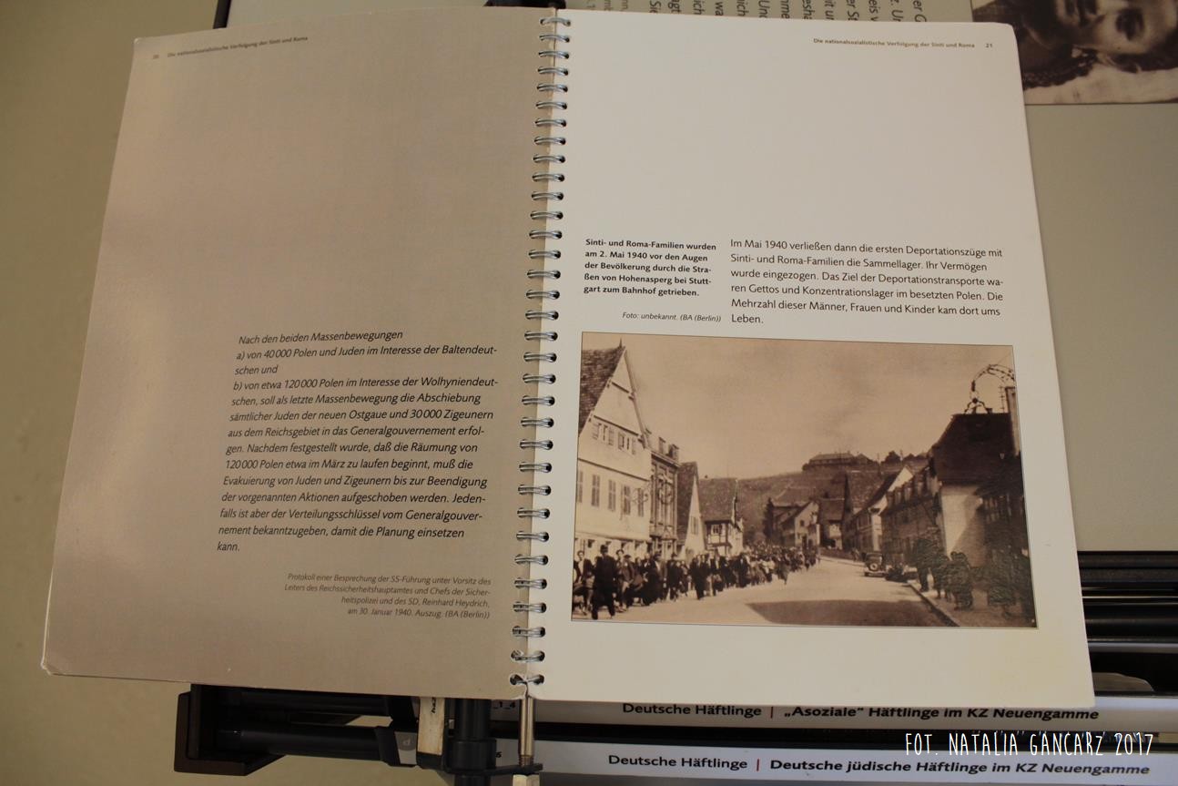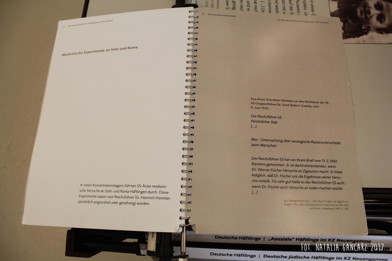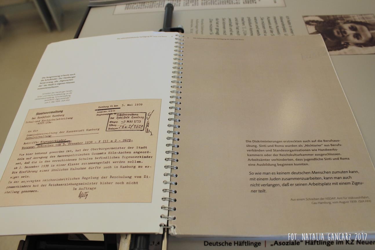 Na stałej wystawie „Traces of History: Neuengamme Concentration Camp 1938–1945 and Its Post-War History” (‘Ślady historii: Obóz koncentracyjny Neuengamme 1938-45 i jego dzieje powojenne’), znajdującej się w blokach 21-24 (później 25-28) znajduje się szereg istotnych informacji odnoszących się do Romów i Sintów więzionych w KL Neuengamme, w tym fotografie oraz dokumenty.