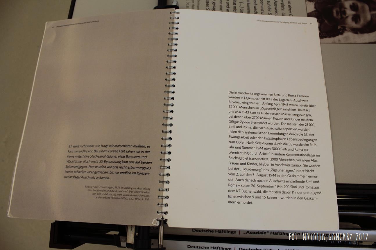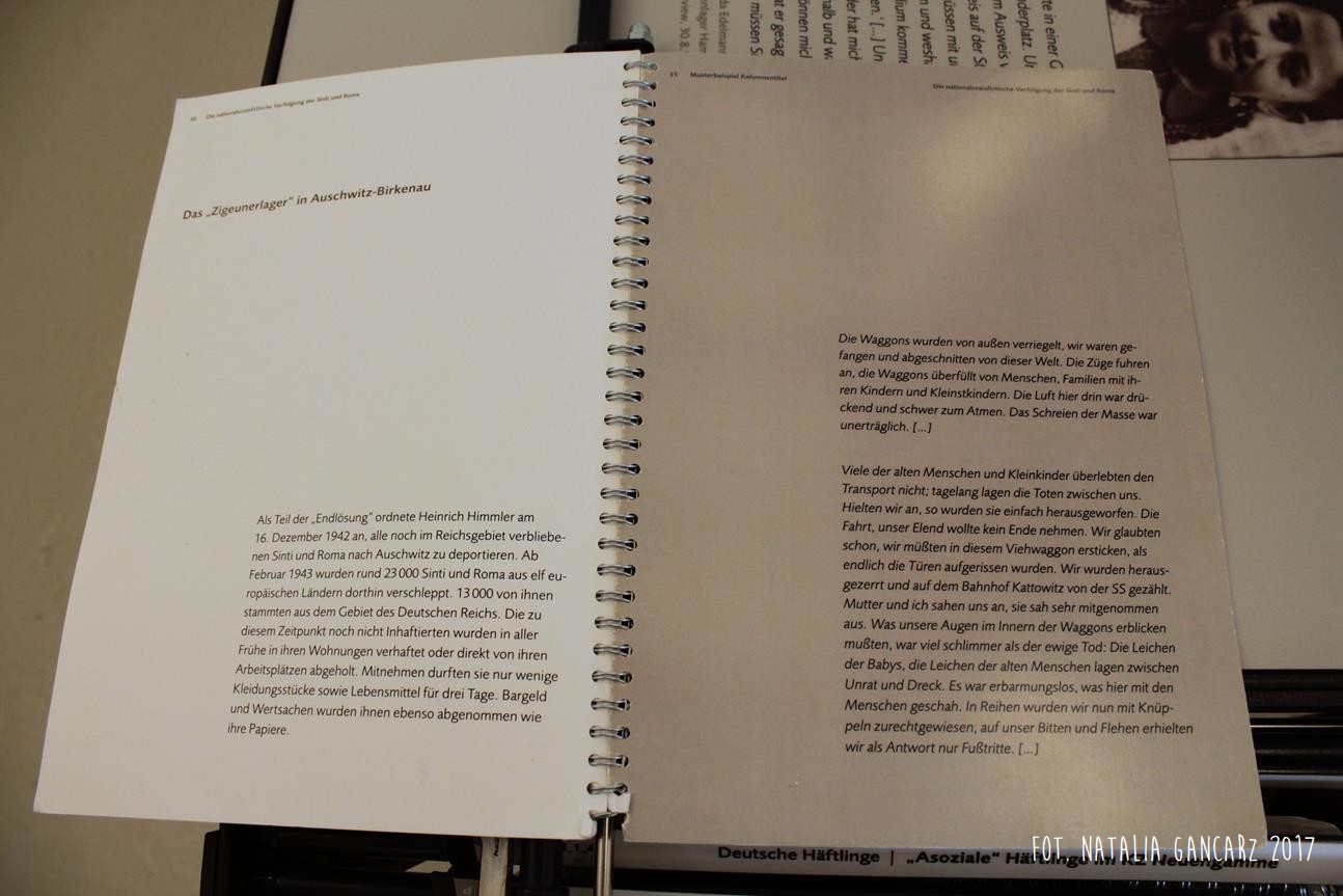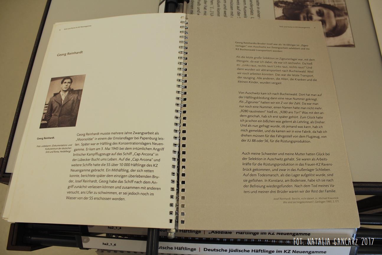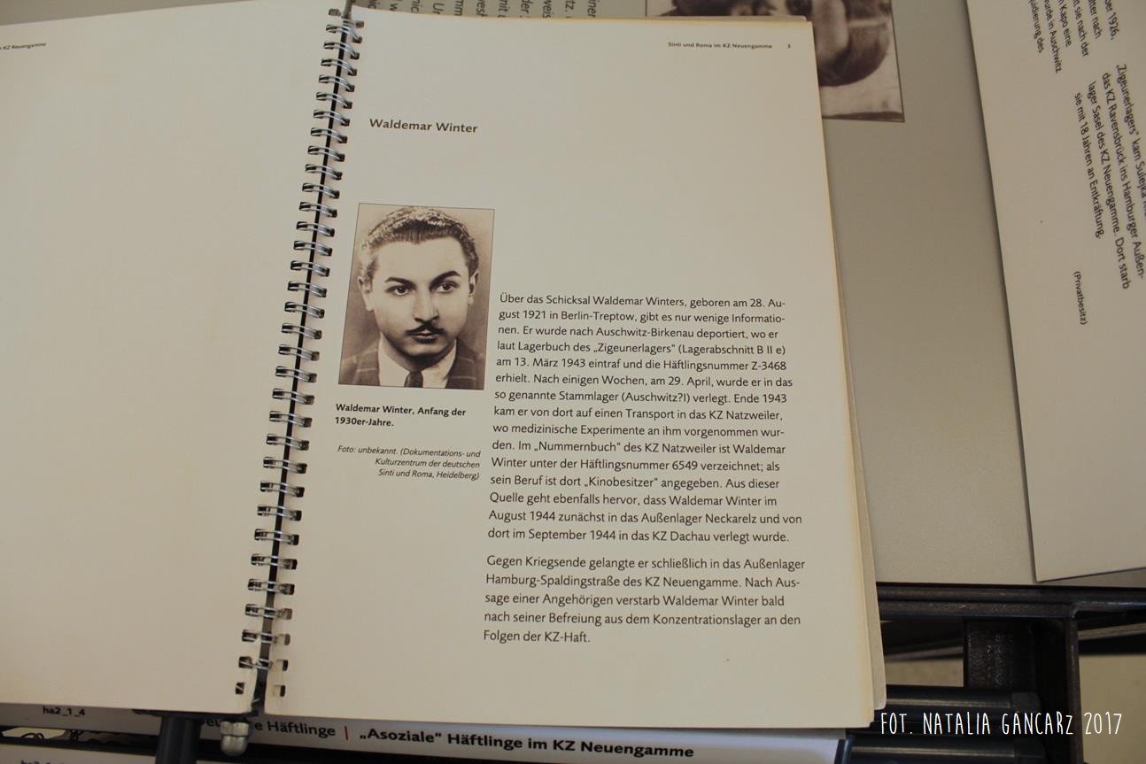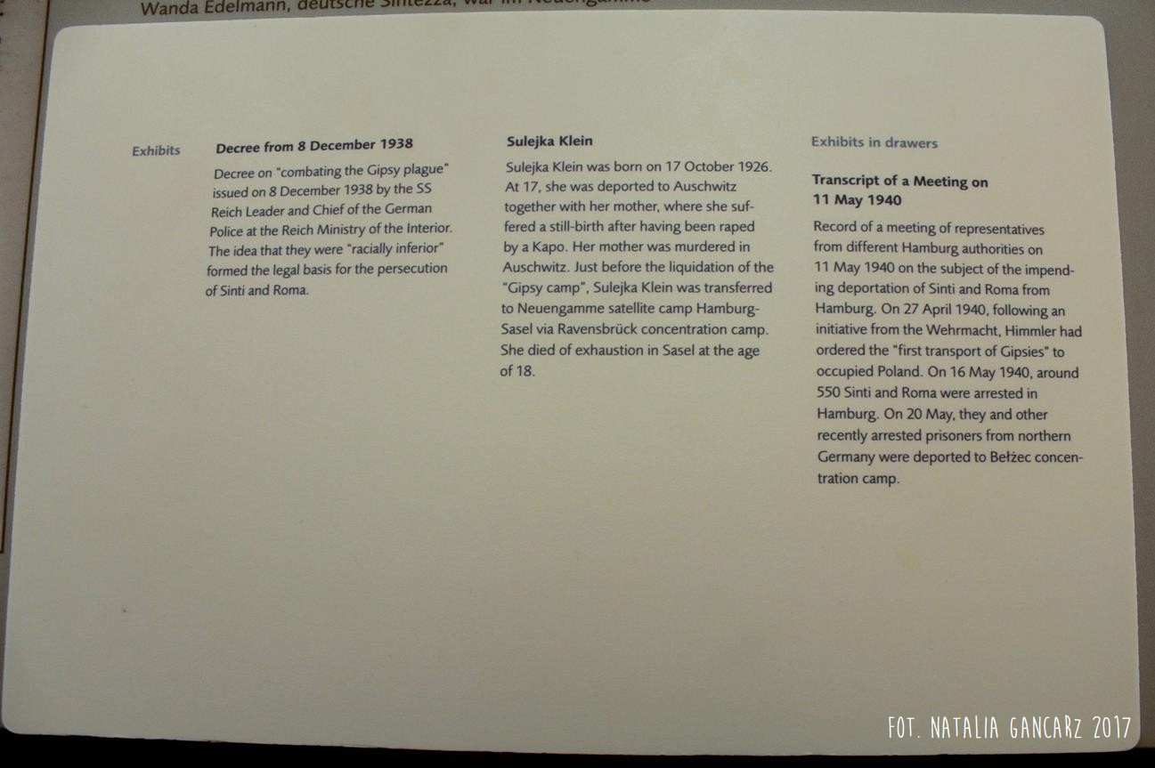 Poza wiadomościami natury ogólnej – dotyczące Zagłady Cyganów, ich liczby w obozie itp. – pojawiają się również sylwetki wybranych więźniów: Waldemara Wintera, Waldemara Herzberga, Georga Reinhardta, Sulejki Klein (która uniknęła śmierci podczas likwidacji Zigeunerfamilienlager w Birkenau, skąd trafiła do KL Ravensbrück, a następnie do KL Neuengamme, zmarła jednak z wyczerpania w podobozie Hamburg-Sasel w wieku lat 18 – jest ona także przedstawiona w prezentacji na ekranie monitora) czy Johanna „Rukeli” Trollmanna, Sinto, znanego niemieckiego boksera, zabitego 9.02.1943 (oficjalna przyczyna śmierci – zatrzymanie krążenia; Zob. też. Stolperstein).
