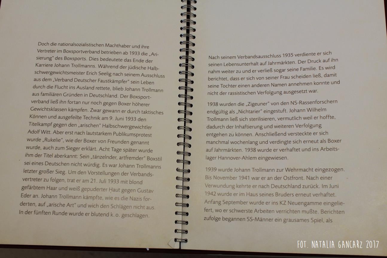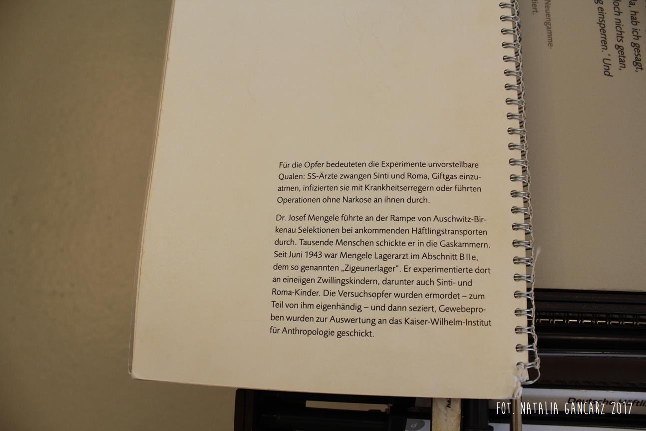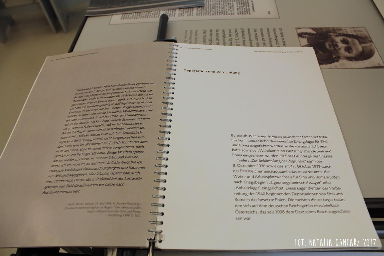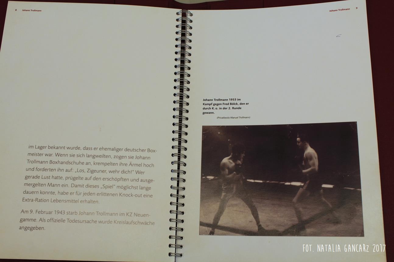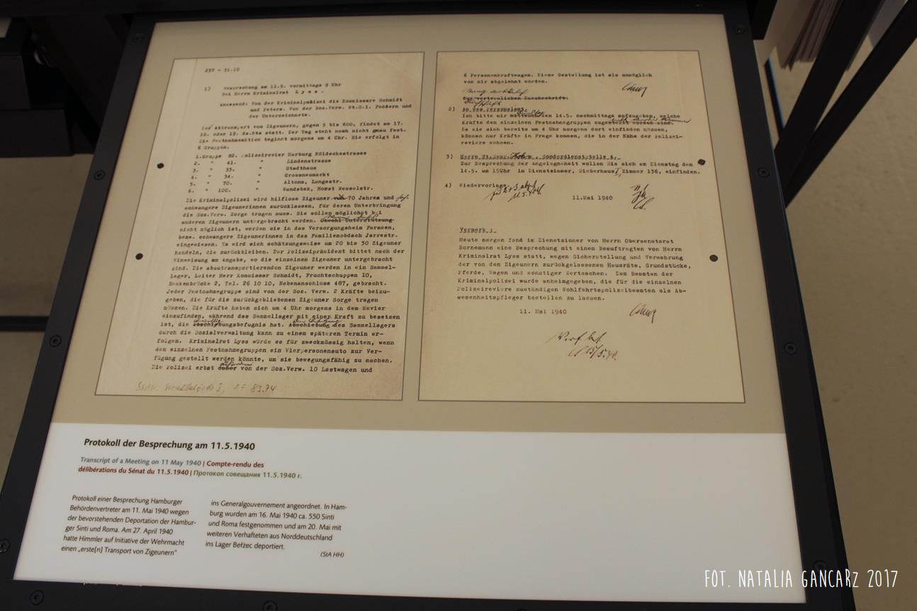 Poza wiadomościami natury ogólnej – dotyczące Zagłady Cyganów, ich liczby w obozie itp. – pojawiają się również sylwetki wybranych więźniów: Waldemara Wintera, Waldemara Herzberga, Georga Reinhardta, Sulejki Klein (która uniknęła śmierci podczas likwidacji Zigeunerfamilienlager w Birkenau, skąd trafiła do KL Ravensbrück, a następnie do KL Neuengamme, zmarła jednak z wyczerpania w podobozie Hamburg-Sasel w wieku lat 18 – jest ona także przedstawiona w prezentacji na ekranie monitora) czy Johanna „Rukeli” Trollmanna, Sinto, znanego niemieckiego boksera, zabitego 9.02.1943 (oficjalna przyczyna śmierci – zatrzymanie krążenia; Zob. też. Stolperstein).