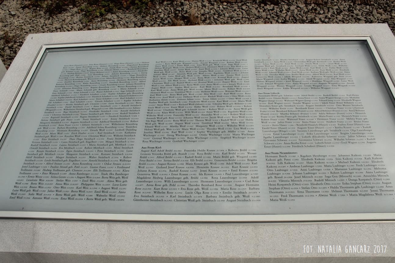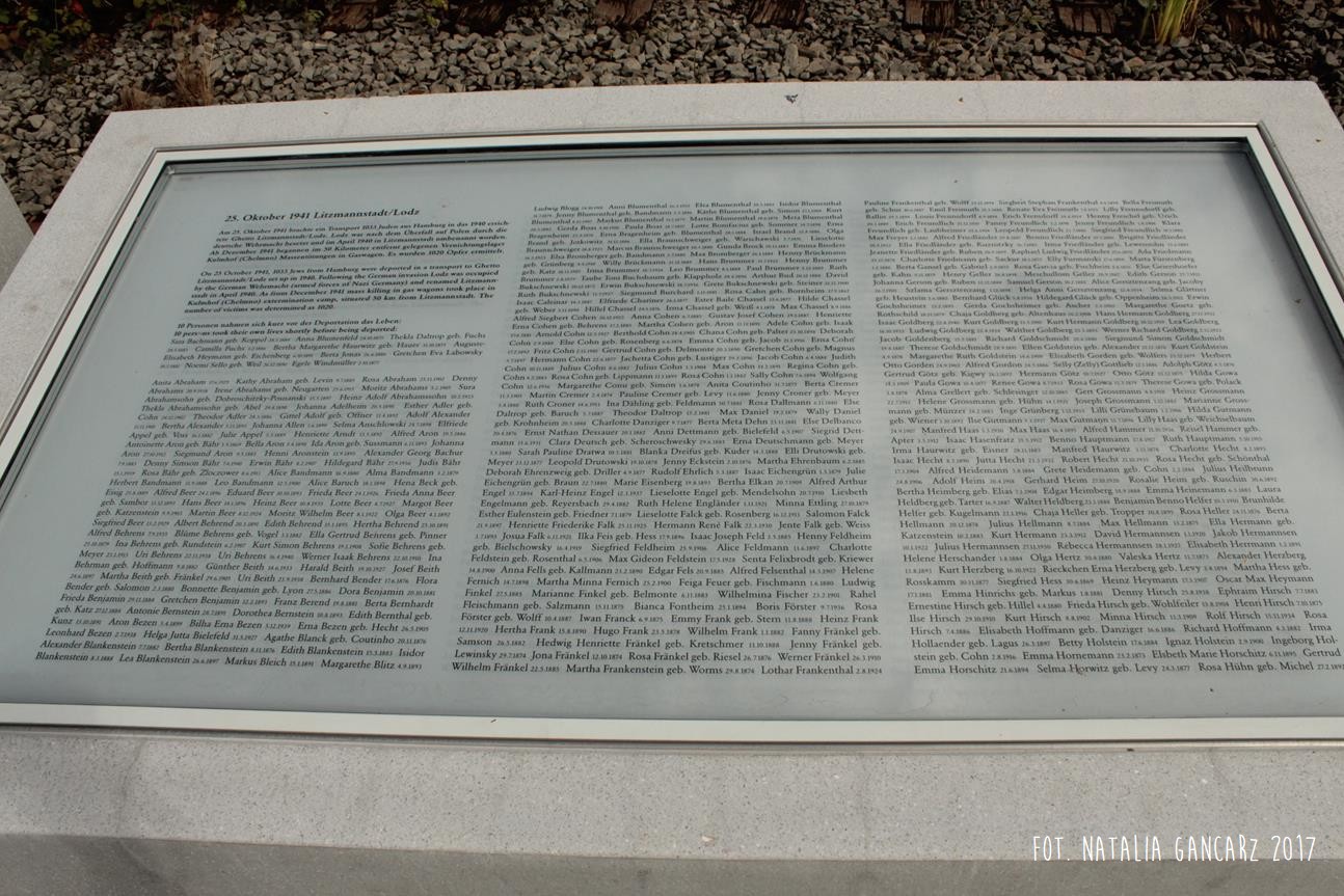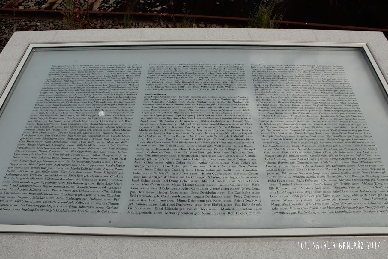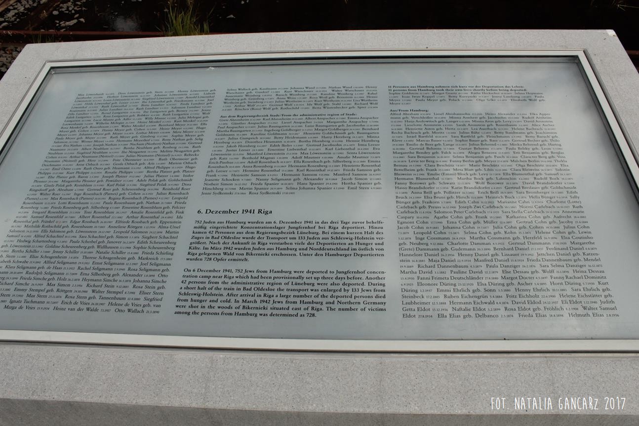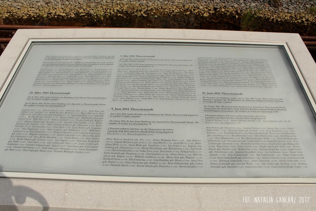 Pomnik Stacji Hannover. Dla upamiętnienia Żydów, Sinti i Romów, którzy w latach 1940-1945, w 20 transportach z Hamburga – zostali wywiezieni do Bełżca, Litzmanstadt/getta w Łodzi, Mińska, Rygi, Auschwitz oraz Teresina.