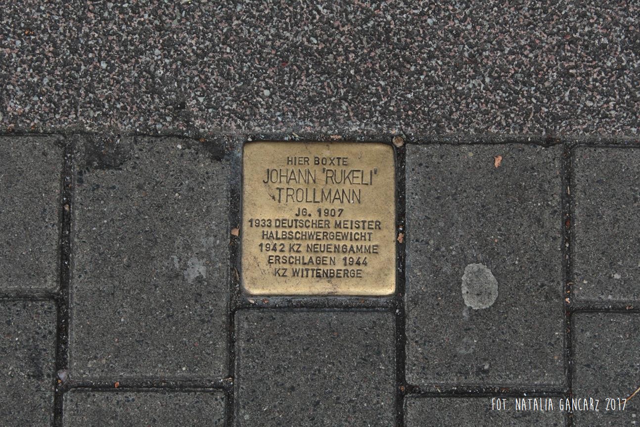 Hier boxte / JOHANN 'RUKELI’ TROLLMANN / Jg. 1907 / 1933 Deutscher Meister Halbschwergewicht / 1942 KZ Neuengamme erschlagen / 1944 KZ Wittenberge