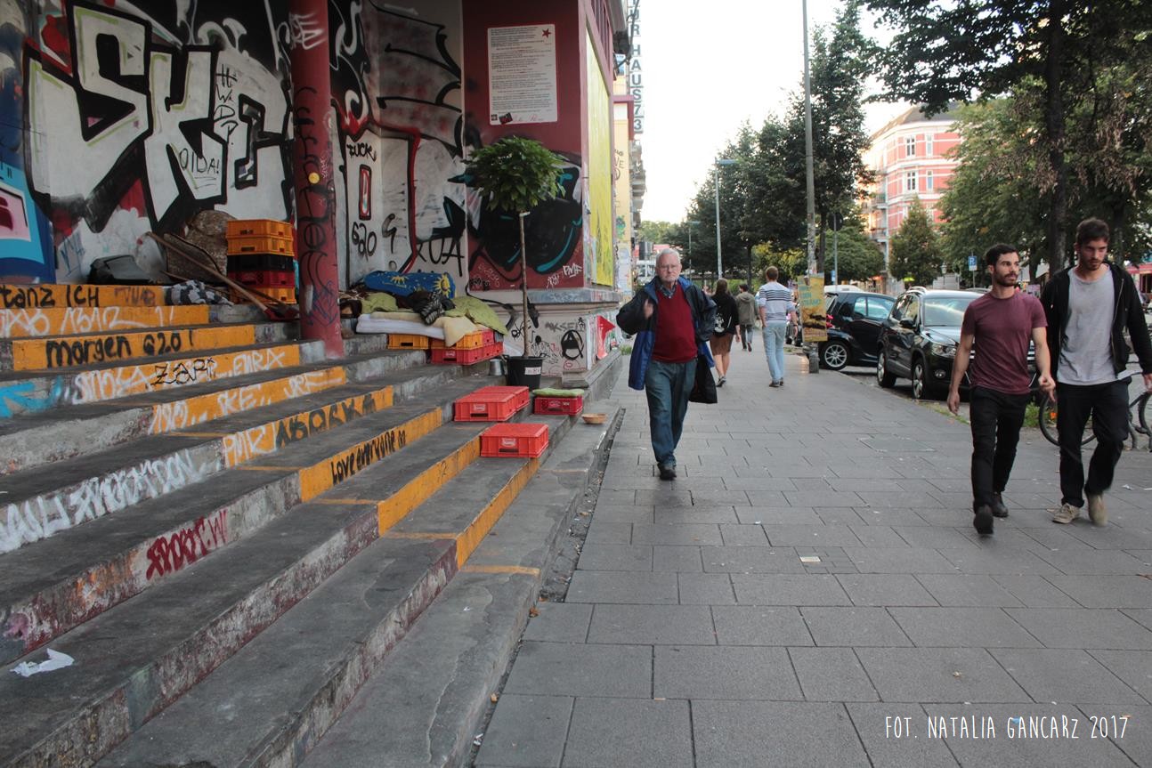 Numer 71 na Schulterblatt to w pewnym sensie pomnik nieustannego protestu – mieści się tu aktualnie squat/miejsce koncertów, za którym znajduje się Schanzenpark, zwany również Hydeparkiem. Okolica o tyle hipisowska, rozrywkowa i modna, co i pełna pijanych i naćpanych osobników.