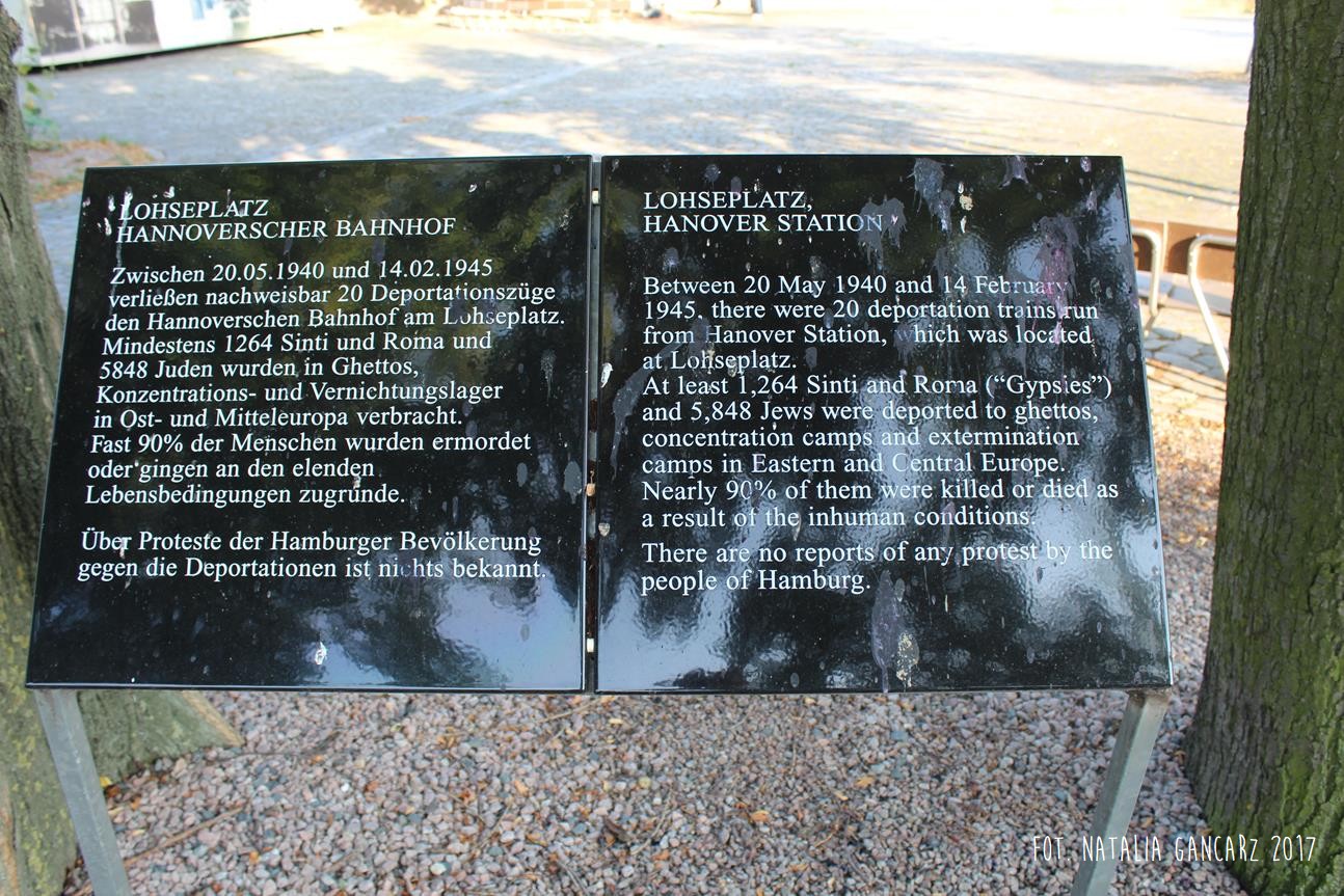 Między 20.05.1940 a 14.02.1945 miało miejsce 20 deportacji pociągami ze Stacji Hannover w Hamburgu, która mieściła się na dzisiejszym Lohseplatz. Co najmniej 1 264 Sintów i Romów (Cyganów) oraz 5 848 Żydów zostało wywiezionych do gett, obozów koncentracyjnych i obozów zagłady w Europie Centralnej i Wschodniej. Blisko 90% z nich zostało zabitych lub zmarło z powodu nieludzkich warunków. Nie istnieją zapisy jakichkolwiek protestów ze strony mieszkańców Hamburga.