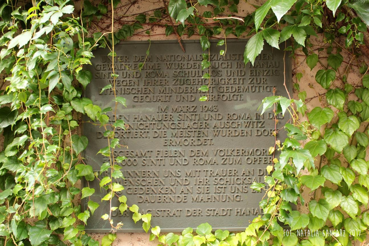 ‘Pod brutalnym reżimem narodowego socjalizmu także w Hanau niewinni Romowie i Sinti byli upokarzani, torturowani i prześladowani. W marcu 19143 r. Sinti i Romowie z Hanau zostali deportowani do obozu zagłady Auschwitz, gdzie większość z nich została zamordowana.
