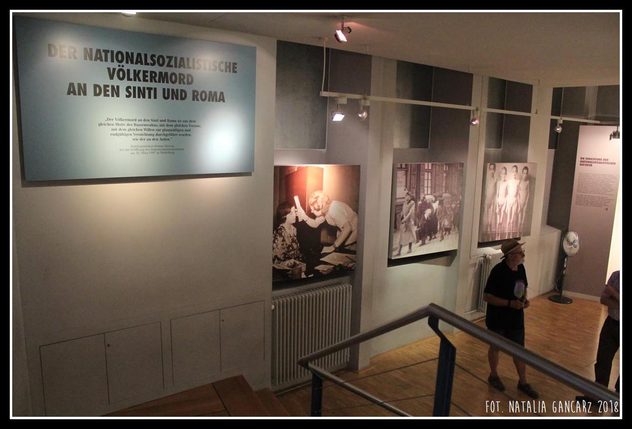 Wystawa „Der Nationalsocialistische völkermord and den Sinti und Roma” mieści się na 3 piętrach w siedzibie Dokumentations- und Kulturzentrum Deutscher Sinti und Roma i zajmuje w sumie prawie 700 m2 przestrzeni. Wystawa rozpoczyna się od powstania ruchu narodowych socjalistów i systemowego budowania nienawiści w stosunku do takich mniejszości jak Sinti, Romowie, Żydzi i in. Wystawa opisuje dzieje Romów i Sintów w najbardziej znanych obozach koncentracyjnych, w których przebywali oraz – losy Cyganów, którzy do obozów nie trafili (jak np. 93 ofiary Niemieckiej zbrodni we wsi Szczurowa na południu Polski). Na ekspozycji prezentowane są ciekawe materiały dokumentalne, nie tylko te będące w posiadaniu muzeów – miejsc pamięci (Auschwitz i in.), ale również nagrań, pozyskanych przez badaczy Centrum w latach 90.