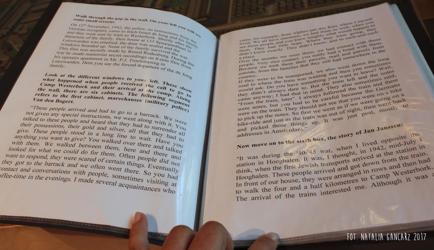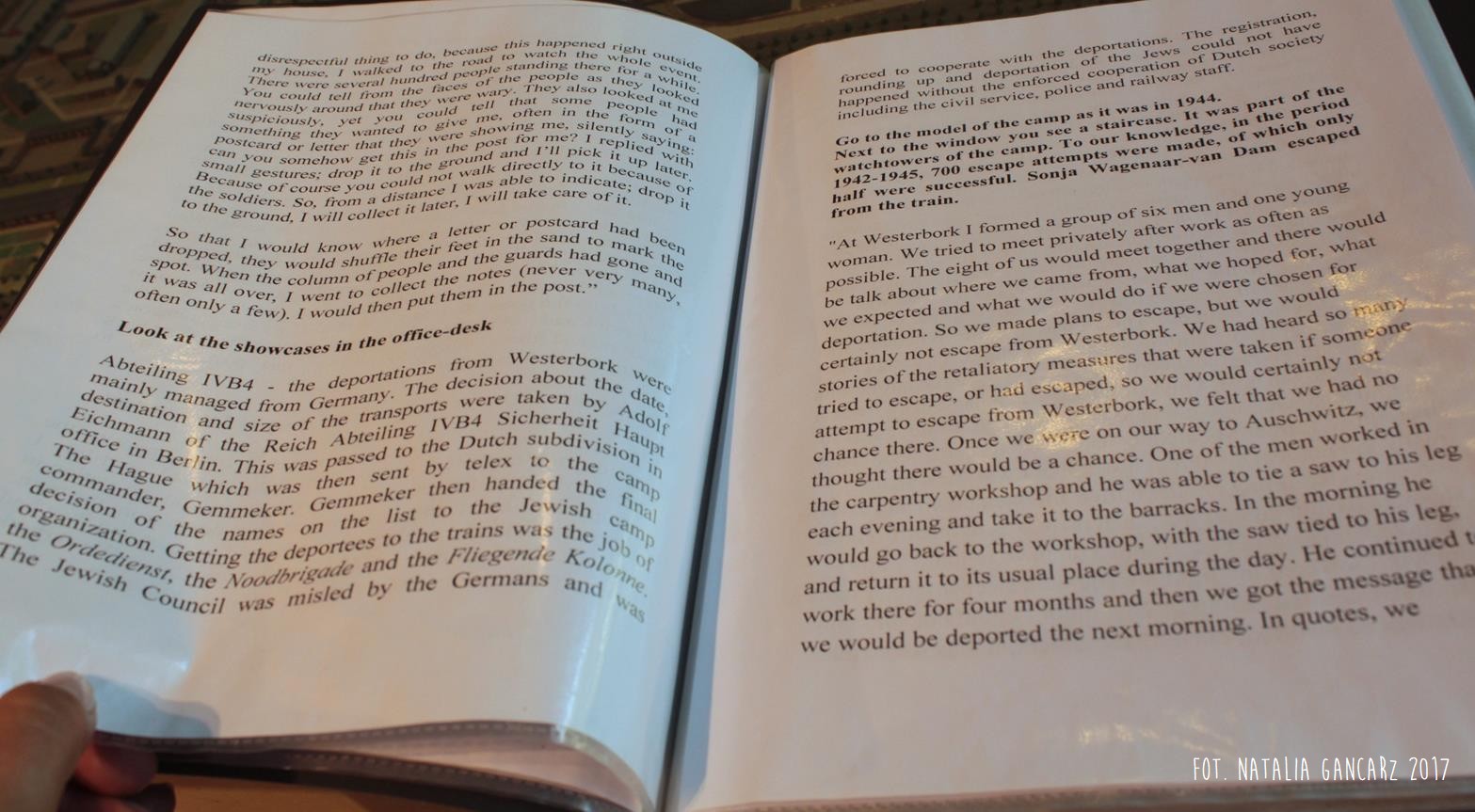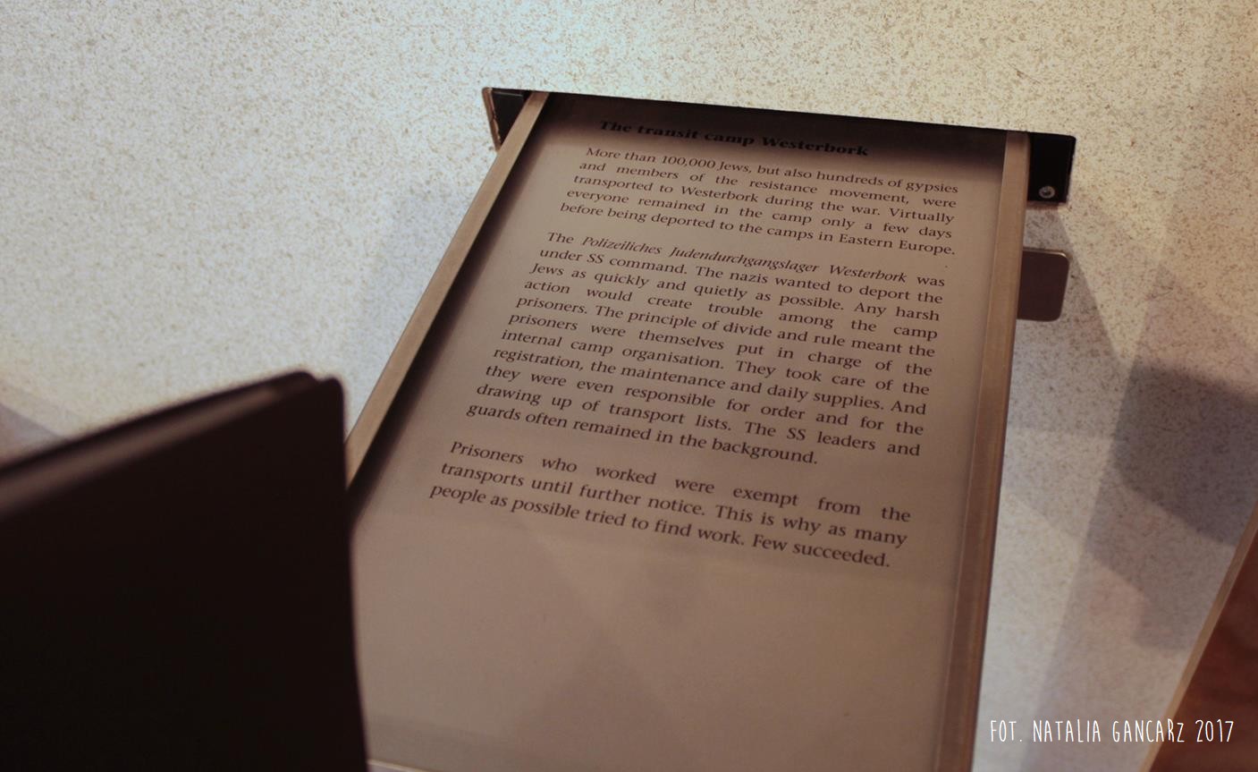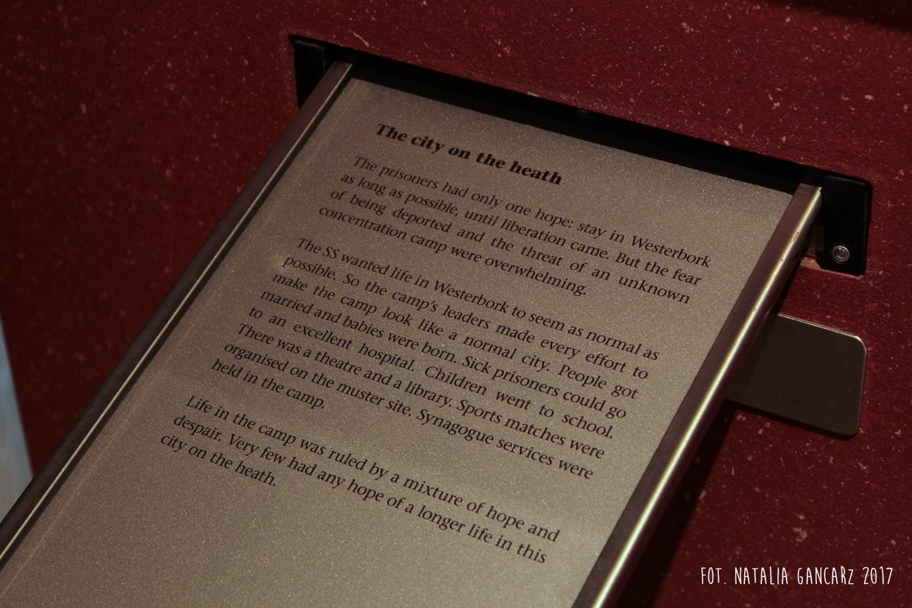 Wspominaliśmy już, że obóz Westerbork był całkiem przyzwoitym miejscem, zwłaszcza dla tzw. „stałych” mieszkańców. I o tym jest wystawa – o szpitalu, szkole synagodze i kościele protestanckim, które działały na terenie obozu, o teatrze, o sporcie. Wystawa jest interesująca, a dla zwiedzających przesiąkniętych historią niemieckich obozów w Polsce, Austrii, Niemczech, Francji itd. – jest niemałym zaskoczeniem. Taka a nie inna specyfika obozu Westerbork czyni łatwiejszym także przygotowanie narracji skierowanej do dzieci i młodzieży. Wystawa proponuje nie tylko taką formę wystawienniczą, która jest atrakcyjna dla młodych, ale też taki dobór treści, by było to dla nich interesujące. Co więcej – Muzeum posiada osobne programy edukacyjne dla najmłodszych, nawet dla przedszkolaków, dla których przygotowane są do wykonania zadania na miarę ich funkcji poznawczych i rozwoju emocjonalno-społecznego. A programy te są dostępne zarówno w formie wyizolowanej (specjalna wystawa dotycząca znaczenia „deportacji” i „uchodźctwa”), jak i bezpośrednio na wystawie stałej (np. „zeszyt” podstawowych informacji o Setteli Steinbach) oraz – na terenie obozu Westerbork (np. skrzynka do której należy wrzucić efekt swojej pracy, znajdująca się obok wieży strażniczej w pobliżu Pomnika Oporu).