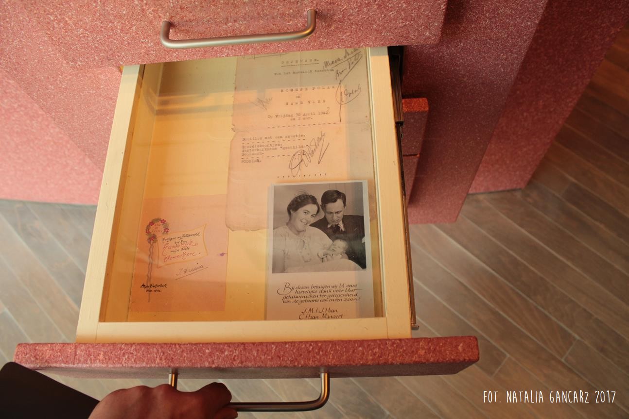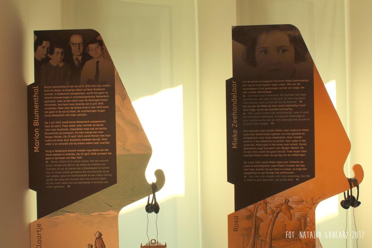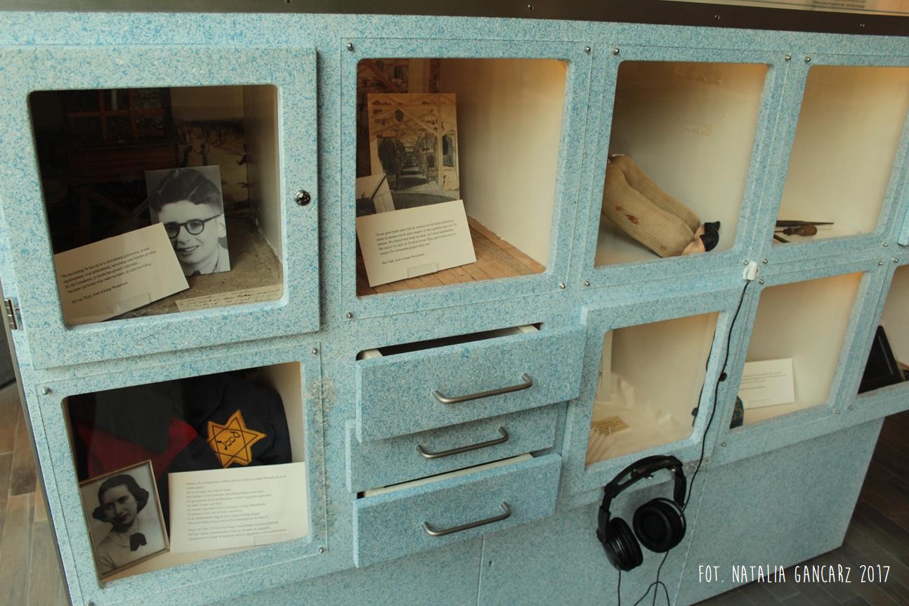 Wystawa pomyślana jest bardzo interaktywnie. W stosunkowo niewielkiej przestrzeni wystawienniczej znajduje się mnóstwo półścianek i ścianek, biurko, stoliki, a wszędzie, gdzie to możliwe – szuflady i szafki z konkretnymi historiami – a to lalka ze zdjęciem dziewczynki, a to elementarz chłopca, a to świadectwo ślubu czyichś rodziców lub odręczny kolorowy rysunek komiksu, sprawiony dla jakiegoś dziecka przebywającego w Westerbork.