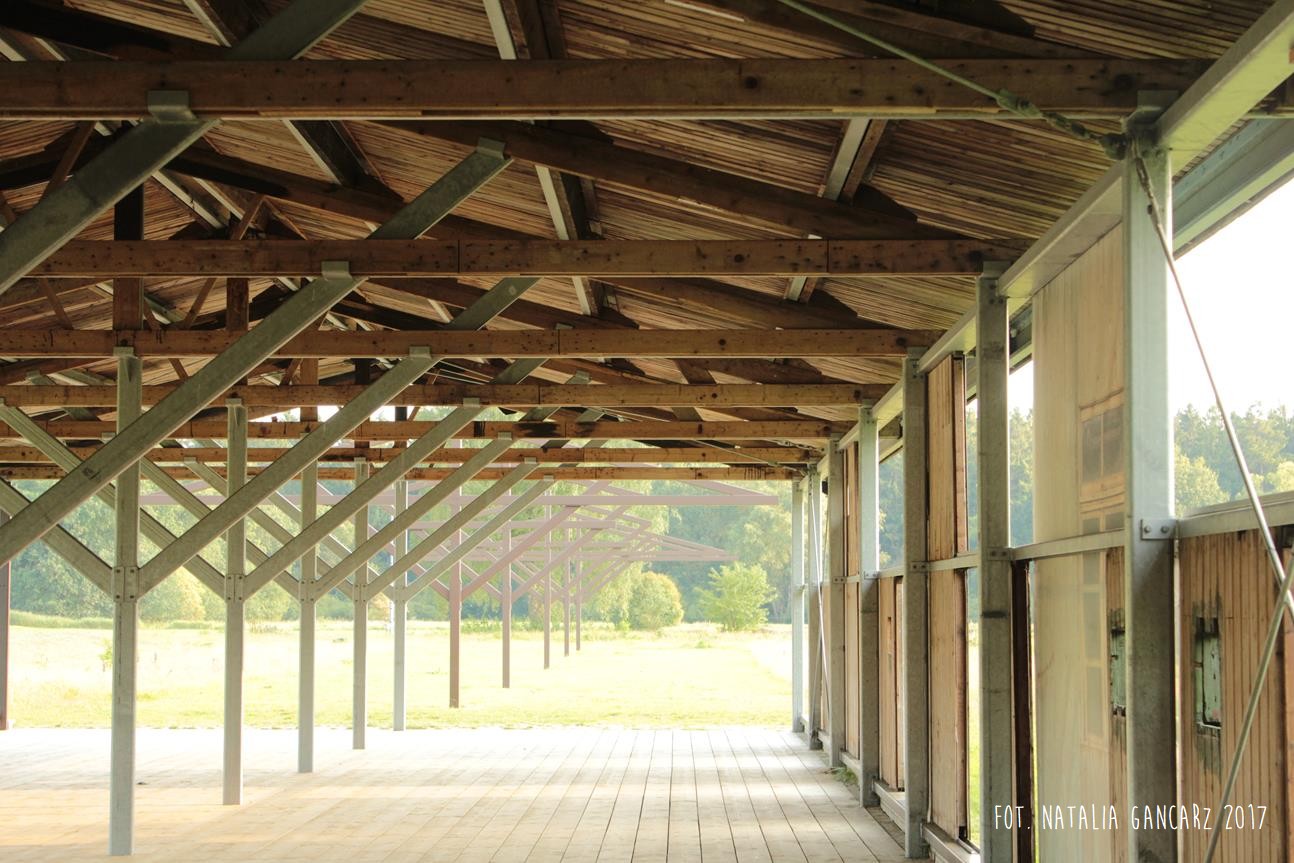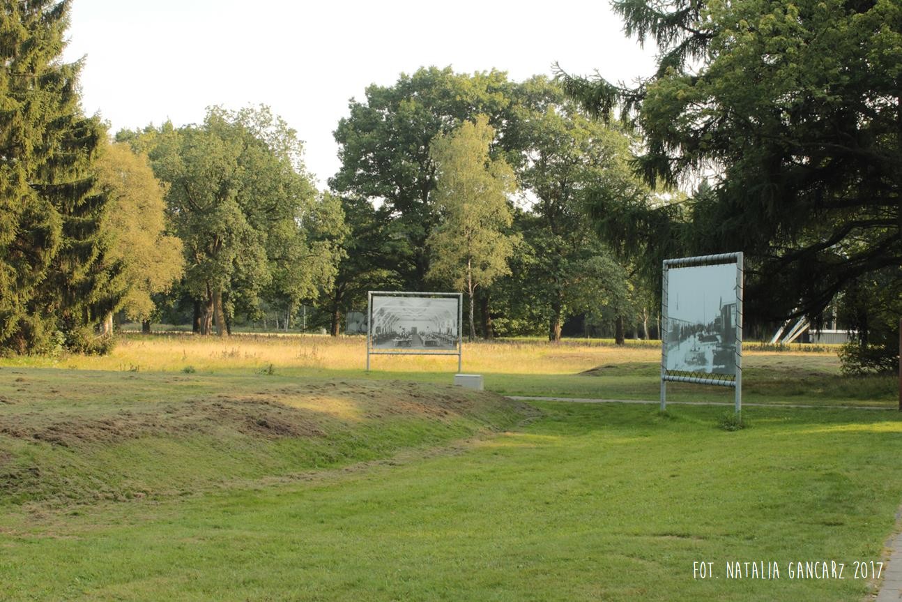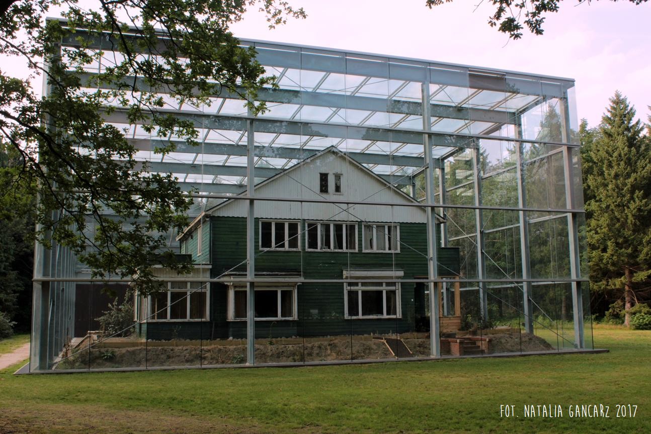 W obozie nie ma zachowanych zabudowań – z wyjątkiem fragmentarycznych rekonstrukcji – ściana lub metalowa konstrukcja baraku oraz – odnowionego i częściowo zrekonstruowanego w roku 2015 domu komendanta obozu. Dom ów, będący własnością potomka komendanta Alberta Konrada Gemmekera, niszczał do czasu, kiedy został wykupiony od spadkobiercy. Potraktowanie tego budynku jako swoistego artefaktu jest zjawiskiem wyjątkowym nie tylko z uwagi na walor historyczny, ale i – wystawienniczy. Cały piętrowy dom mianowicie, z poddaszem, werandą i „ogrodem zimowym” (werandą oszkloną od tyłu) – został umieszczony w szklanej „gablocie”…