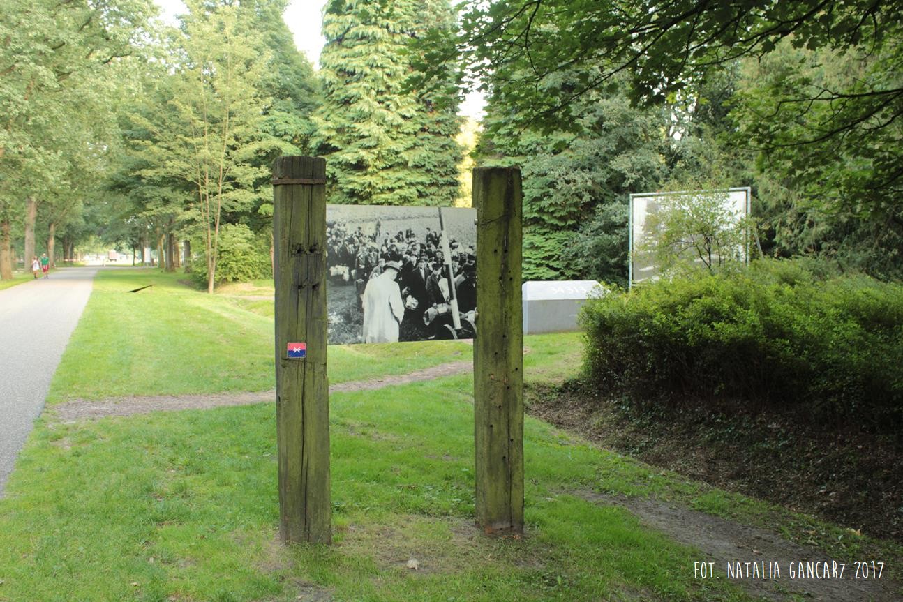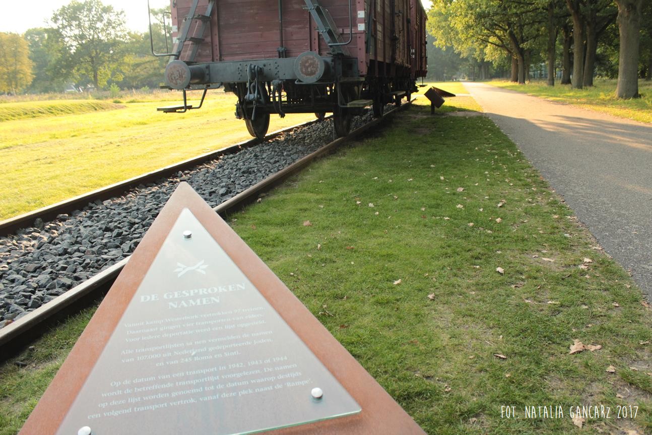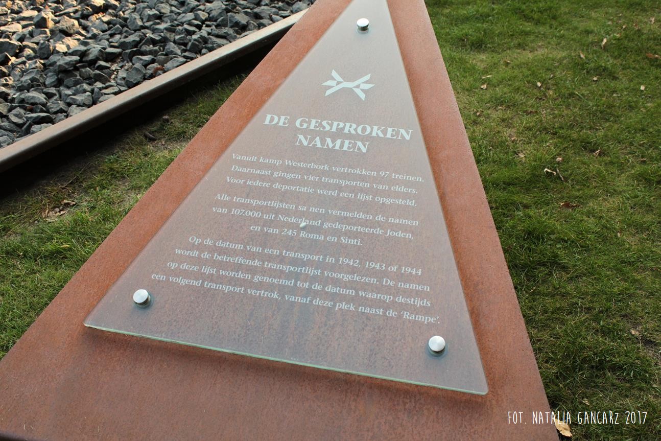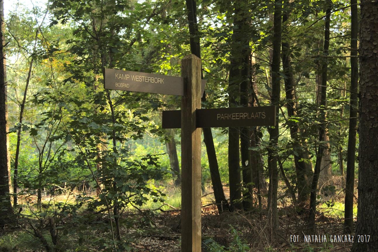Droga do dawnego obozu Westebork wiedzie przez las i oznaczona jest drewnianymi słupami, z których każdy reprezentuje osobny transport. Na tabliczkach napisana jest dzień tygodnia, data transportu, miejsce docelowe oraz liczba osób.