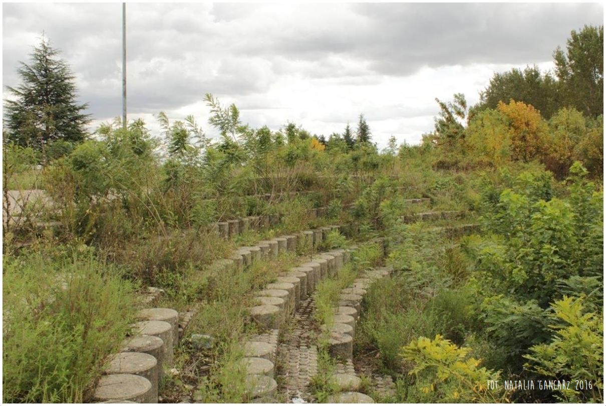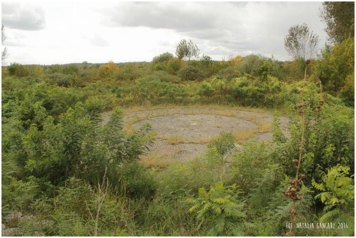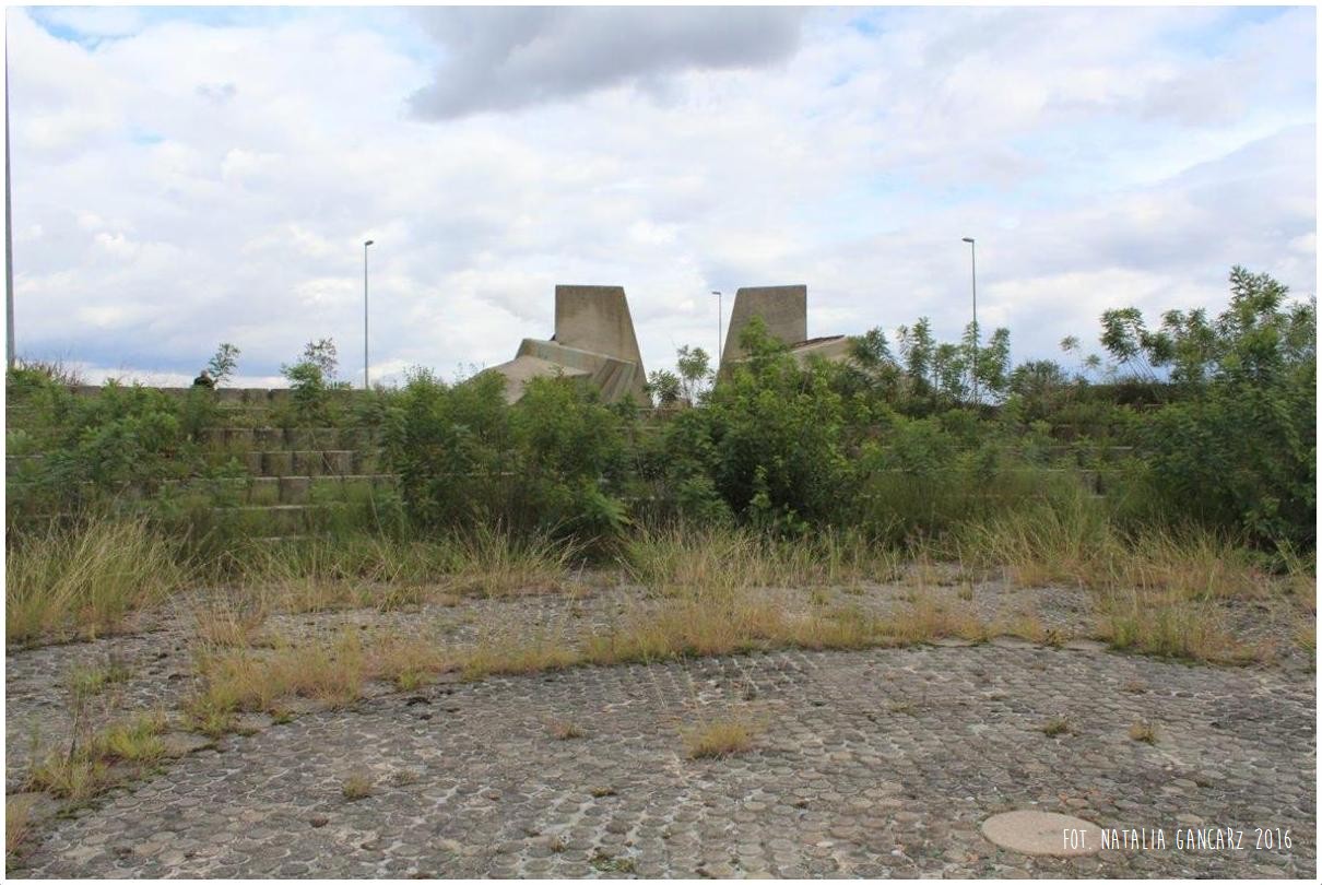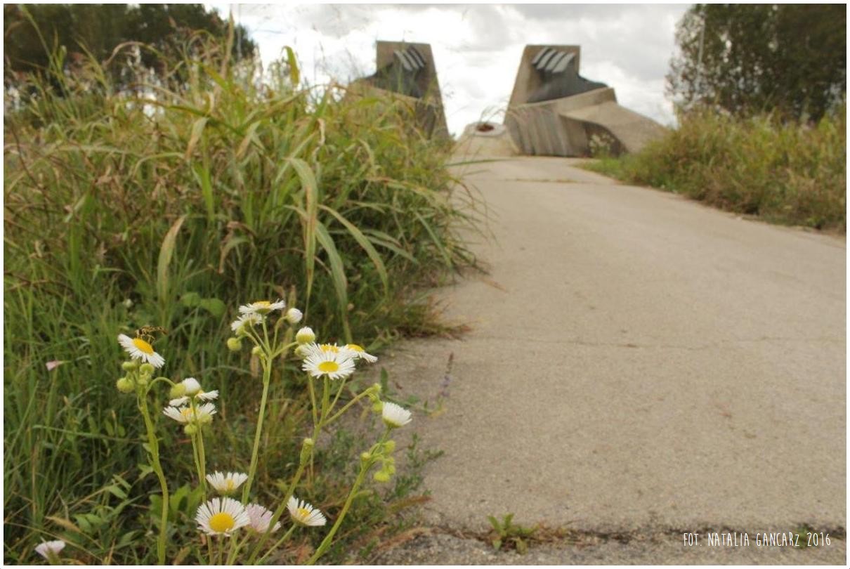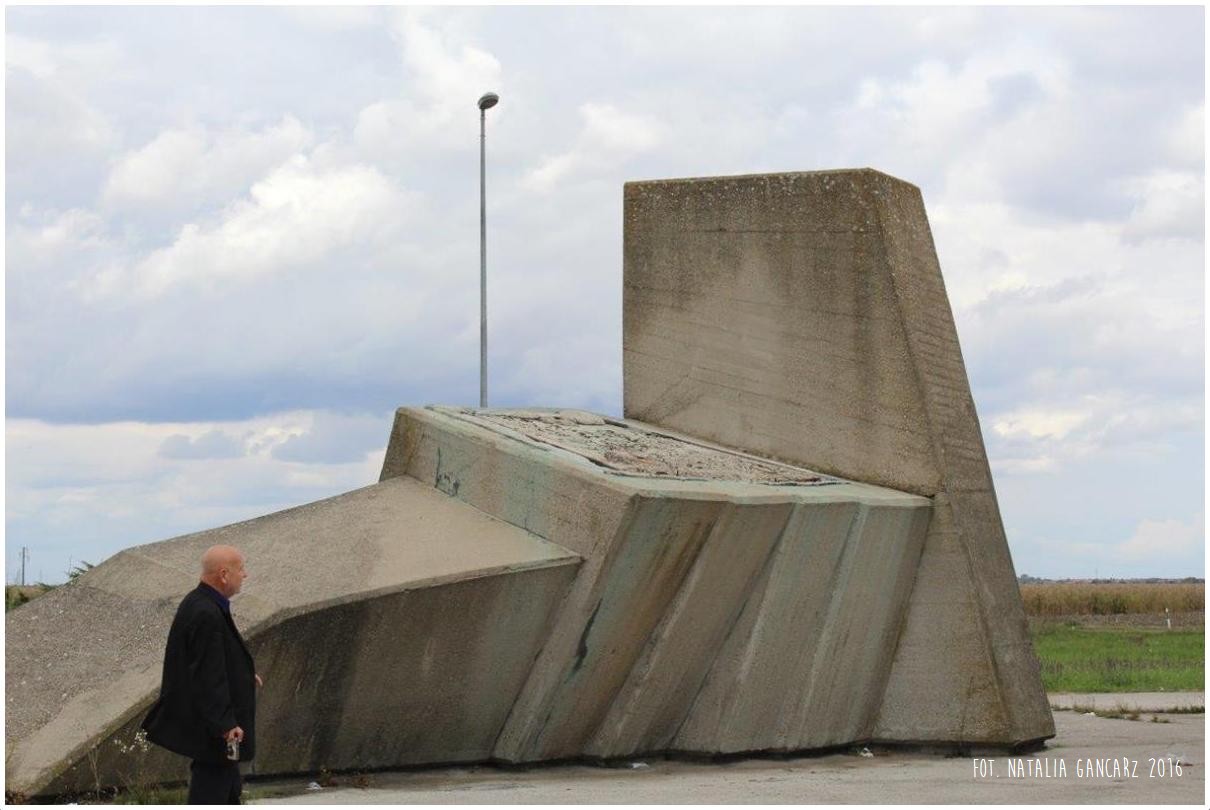 Przed pomnikiem widoczna jest betonowa postawa pod tablicę (tablicy brak).