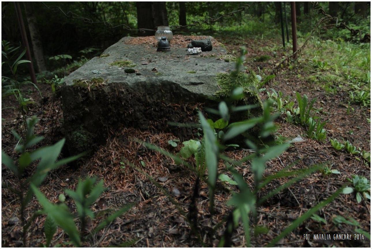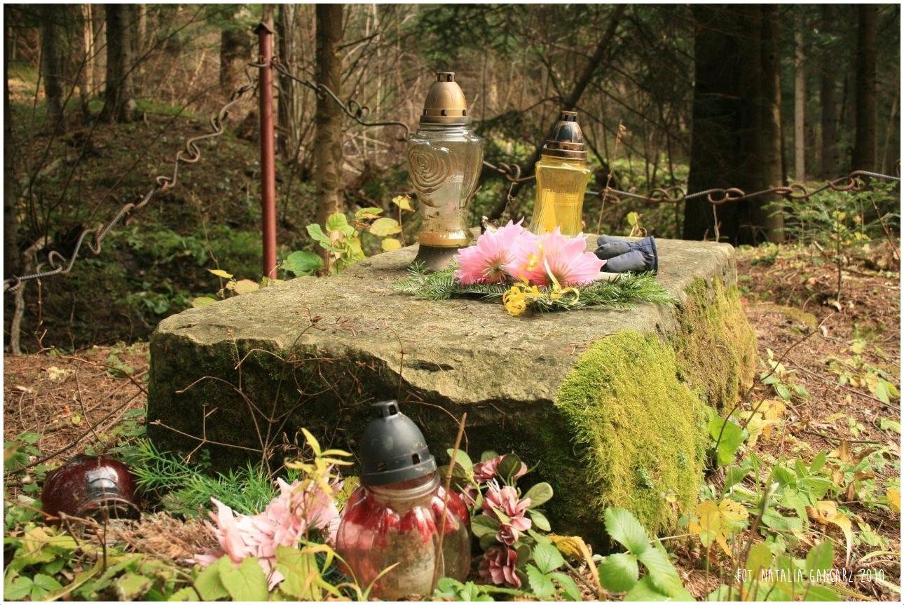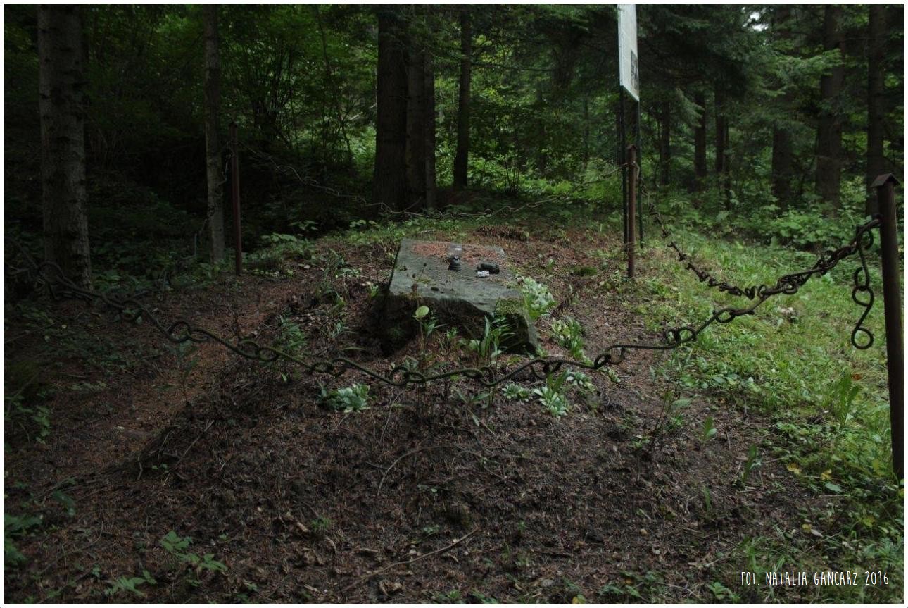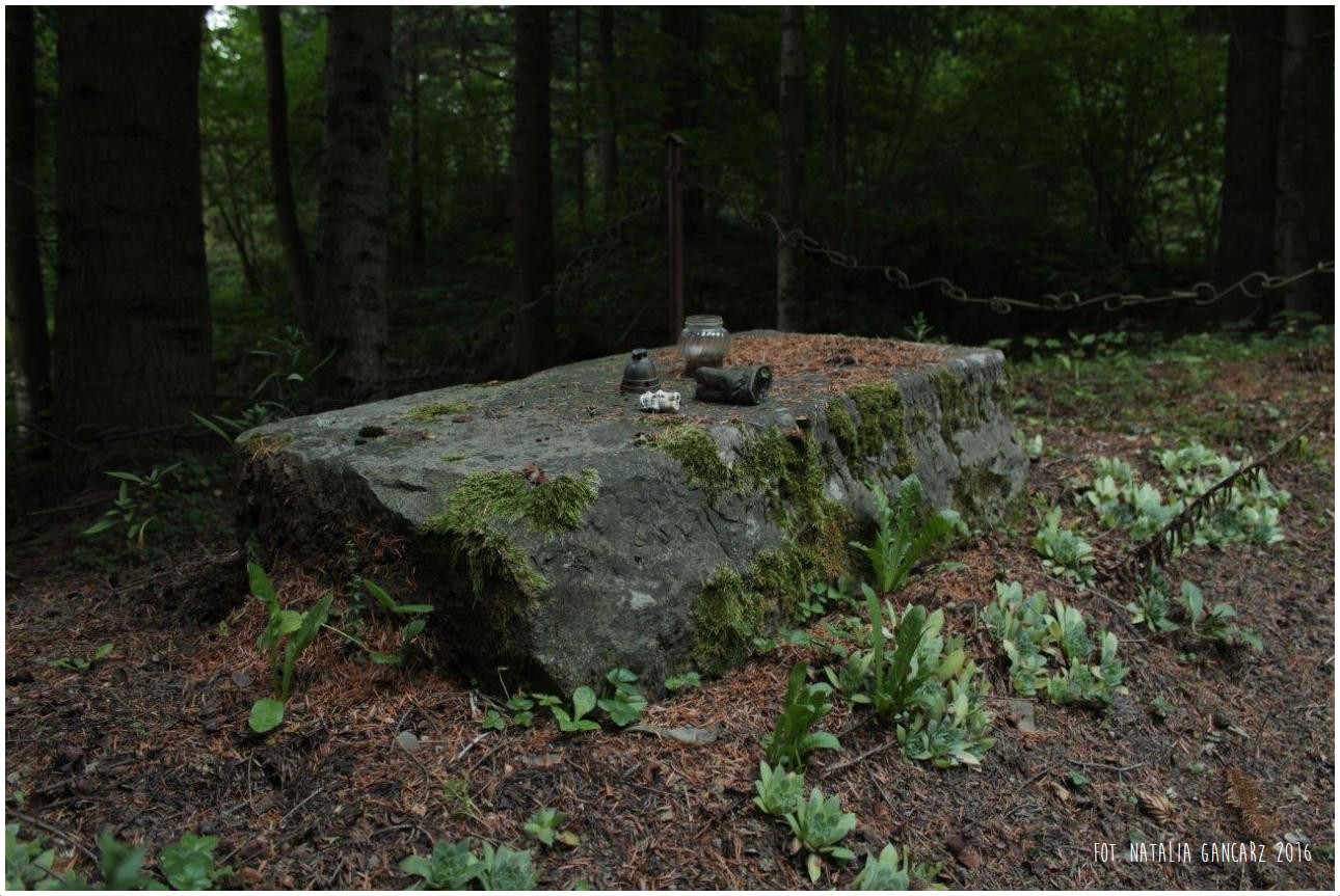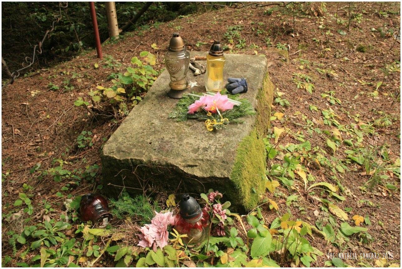 Przy leśnej ścieżce (także jako przystanek nr 16 – Ścieżki przyrodniczo-historycznej po Komańczy) na obrzeżach Komańczy w kierunku na Prełuki, znajduje się niewielka mogiła, na której położono wstępnie ociosany kamień (podobny do prefabrykatu przeznaczonego na macewy), otoczona ręcznie kutym ze stalowych prętów łańcuchem.