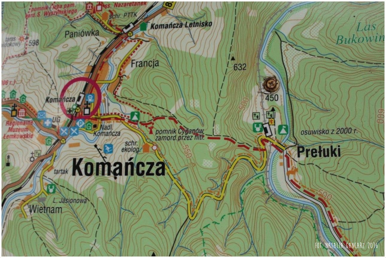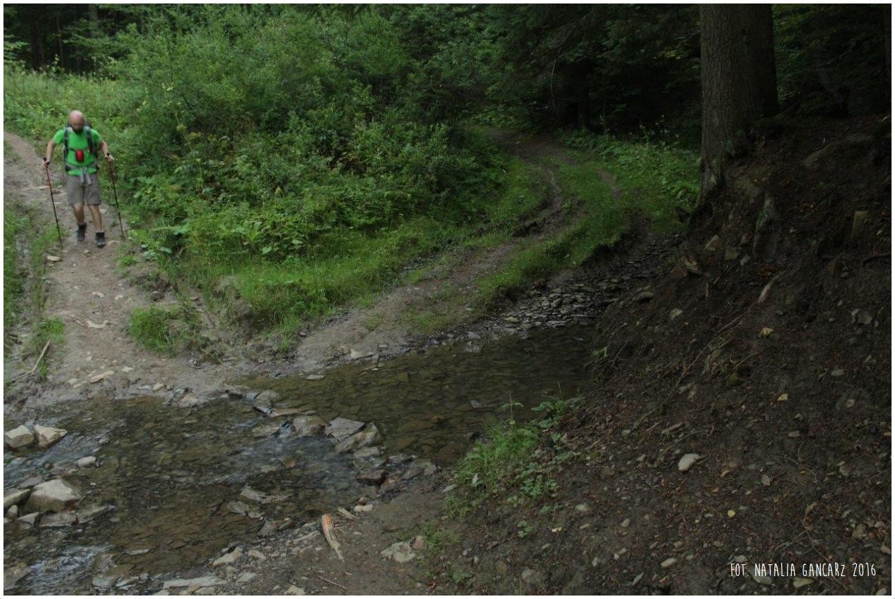 tu zaparkuj samochód – trzeba podejść pieszo 300 m z tego miejsca: 49°20’15.1″N 22°04’45.3″E (szlak czerwony i niebieski; za strumykiem dróżka leśna na prawo i lekko w dół)