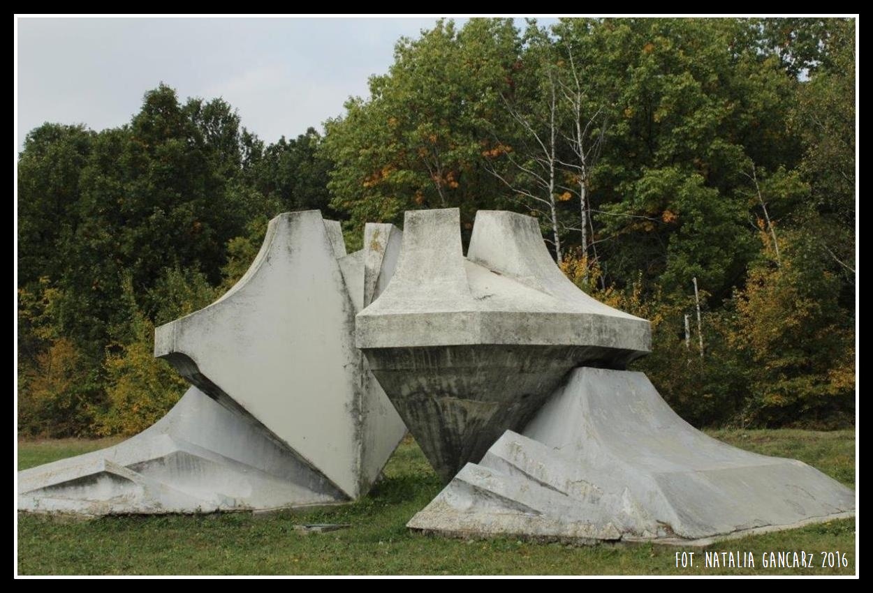 Pomnik betonowy, kształtem przypominający kwiat origami, rozkładający się do wewnątrz. Składa się z dwóch, stojących niezależnie części. Pomiędzy nimi wmontowane w ziemię płaskie oświetlenie.