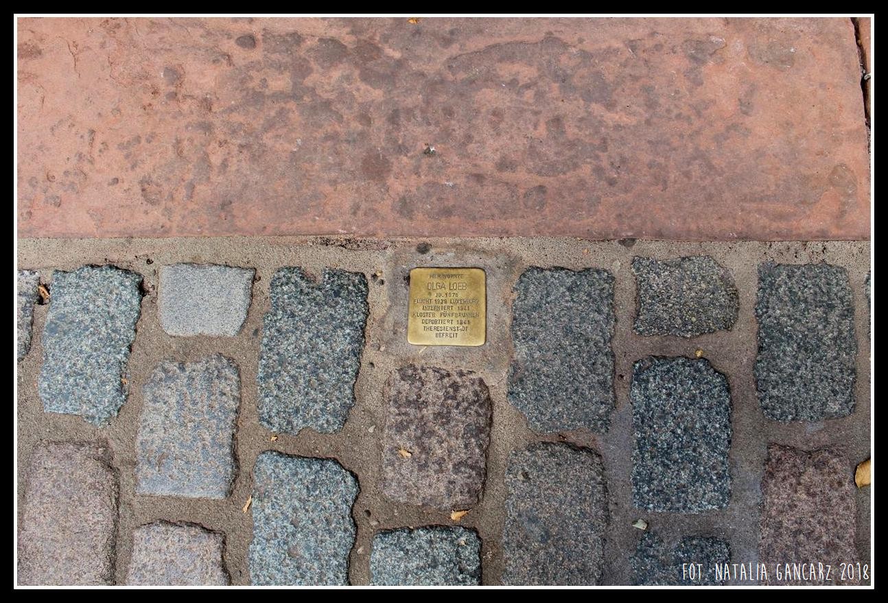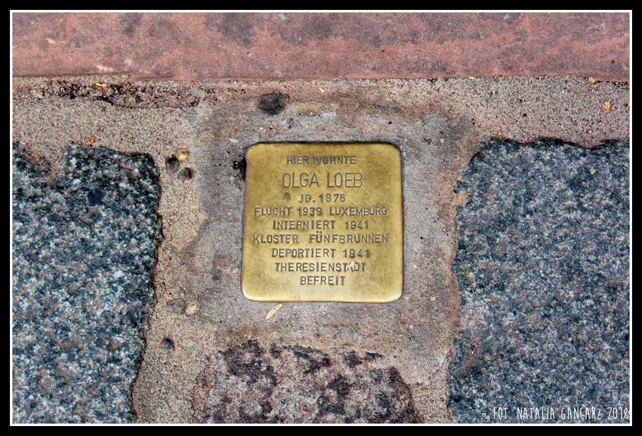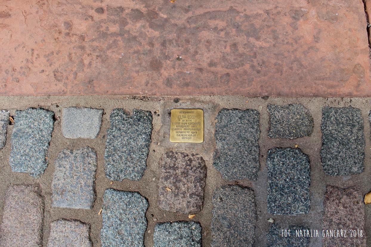 Przed domem w bruku umieszczono stolperstein, poświęcony Oldze Loeb, internowanej m.in. w Theresienstadt, a na elewacji, po prawej stronie od drzwi – po obu stronach okna – znajdują się dwie tablice memorialne.