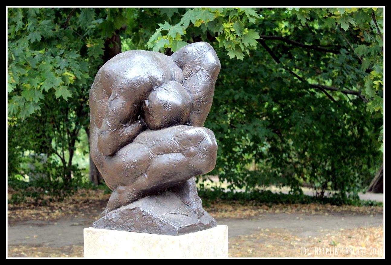 Pomnik osadzony jest na betonowym postumencie, który z kolei umieszczono na miejscu, wydzielonym z trawnika poprzez ułożenie granitowego, żółtego bruku, ograniczonego betonowymi krawężnikami. Na postumencie stoi rzeźba „Pobity”. Jest to odlew z brązu wykonany przez Wielanda Förstera. Przedstawia postać męską, nagą, przykucniętą i skuloną. Twarz ma opartą na prawym udzie, między bezwłosą głową a nogami, pod szyję wciska prawą dłoń. Jego lewe kolano znajduje się wysoko, wyżej głowy, prawe znacznie niżej, a plecy są zaokrąglone. Postać ma umięśnione ramiona i uda, nie wygląda na człowieka wyniszczonego, ale na zmuszonego do uległości, załamanego siłacza.
