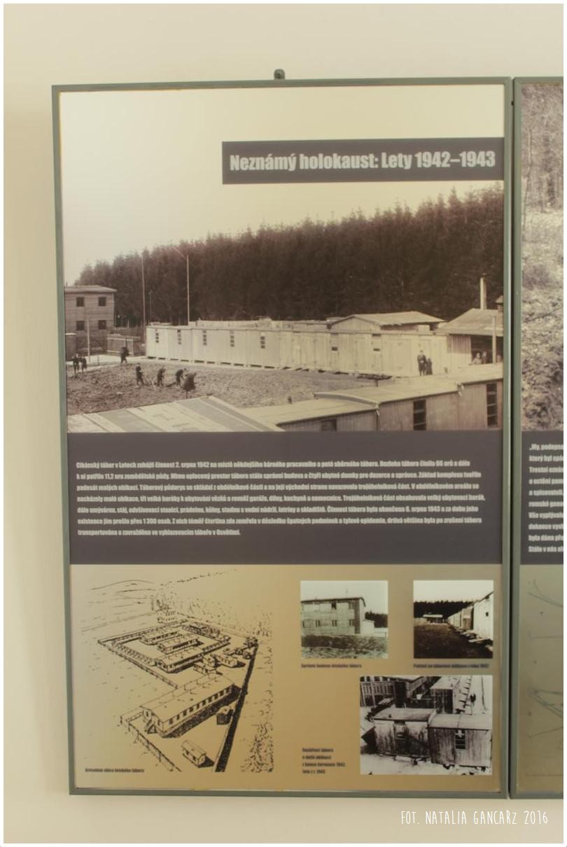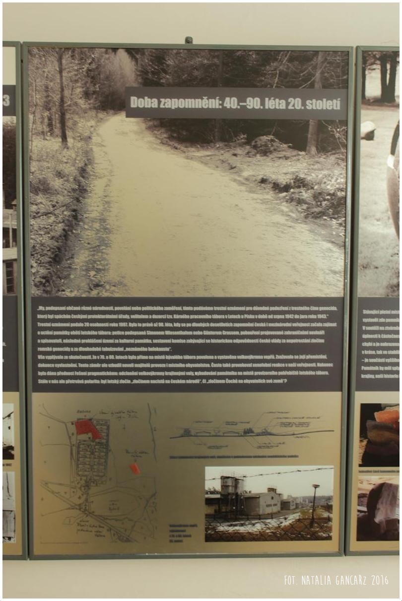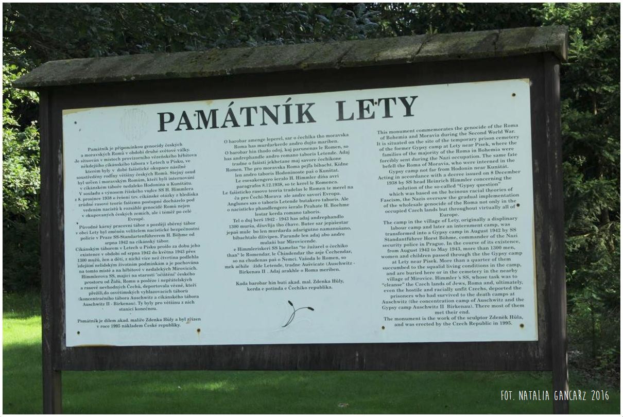 Całości dopełniają amfiteatralnie ustawione ławki, przygotowane do spotkań memorialnych, przy wejściu na plac-łąkę. Tam też znajduje się duża tablica informacyjna w językach czeskim, romskim i angielskim.
