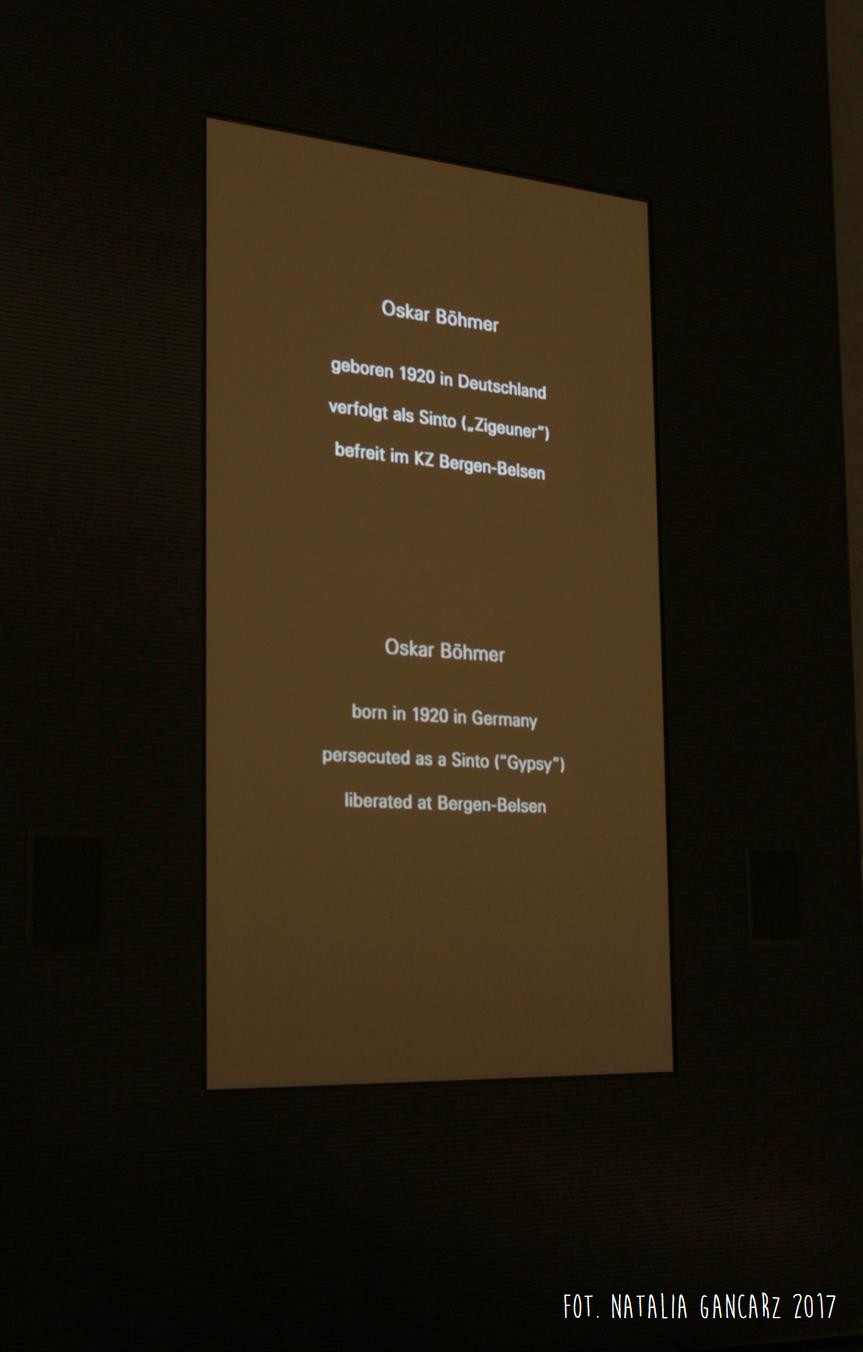 Ekspozycja Miejsca Pamięci KL Bergen-Belsen jest nowoczesną, opartą przede wszystkim na relacji świadków – narracją. Romowie i Sinti pojawiają się na wystawie w kilku miejscach. W „Prologu”, gdzie kobiety i mężczyźni opowiadają o życiu przed deportacją pojawia się m.in. Oskar Böhmer, Sinto z Hambuga, który wraz z rodziną trafił początkowo do obozu Berlin-Marzahn, a w końcu do KL Bergen-Belsen.