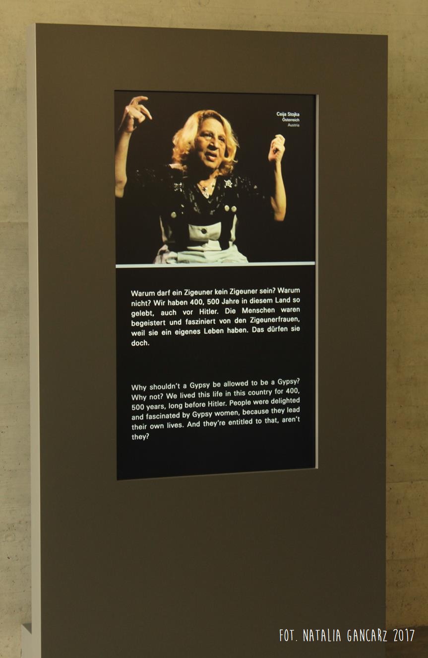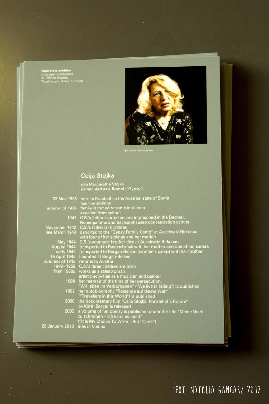 W filmach występuje m.in. Ceija Stojka, austriacka Cyganka i artystka. Zresztą ona sama jest na tyle charakterystyczną i wybitną osobą, że poświęcono jej również fragment wystawy z biografiami.