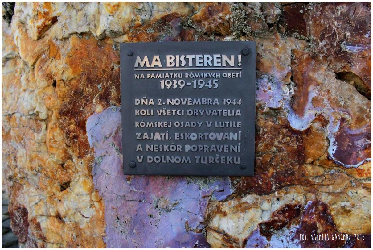 (Ma bisteren! Ku pamięci romskich ofiar 1939-1945. Dnia 2 listopada 1944 wszyscy mieszkańcy romskiej osady w Lutili zostali pochwyceni, wyprowadzeni, a następnie zabici w Dolnym Turczeku)