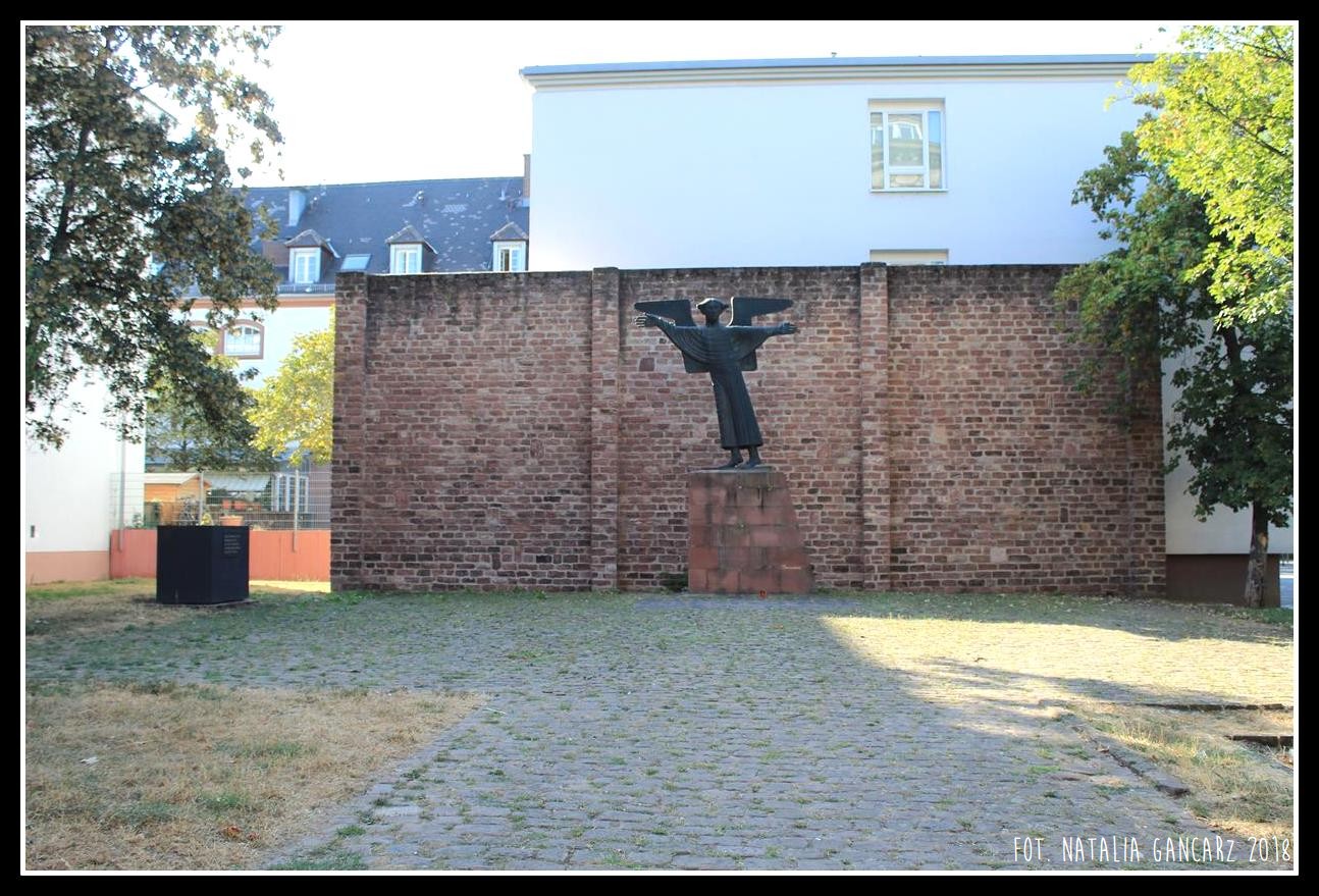 W kwartale E6 w Mannheim, na placu blisko kościoła Jezuitów, w 1983 r. stanął pomnik Anioła Wolności, poświęcony ofiarom lat 1933-45. Na placu pod postumentem znajduje się napis wykonany z ciemnych, granitowych kostek brukowych, odróżniających się kolorem od bruku w kolorze szaro-czerwonym („Es mahnen die Toten 1933-45”). W tym samym miejscu (w lewym rogu placu) 14 lat później stanął pomnik w kształcie prostopadłościanu (zbliżonego do sześcianu), poświęcony szczególnej grupie ofiar II wojny światowej – Sinti i Romom, mieszkańcom Mannheim.