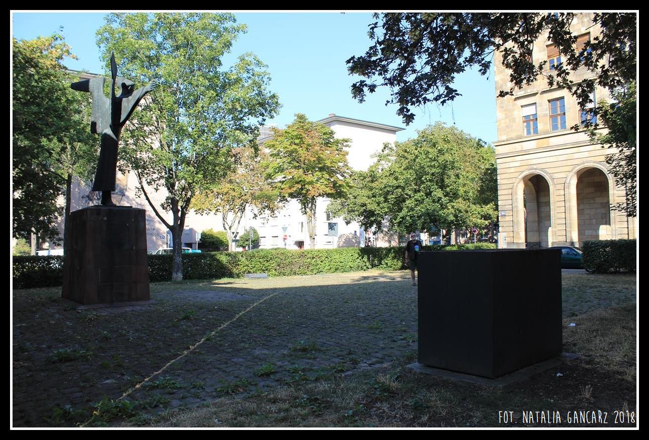 Na Placu po prawej stronie Kościoła Szpitalnego (Spitalkirche), stela wygląda jak metalowe trafo elektryczne