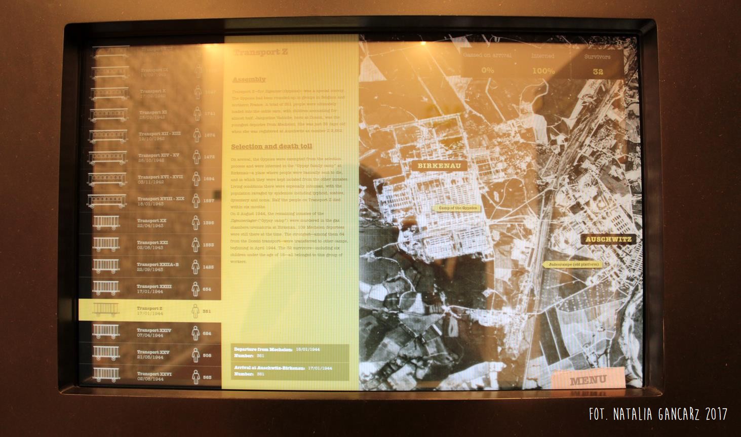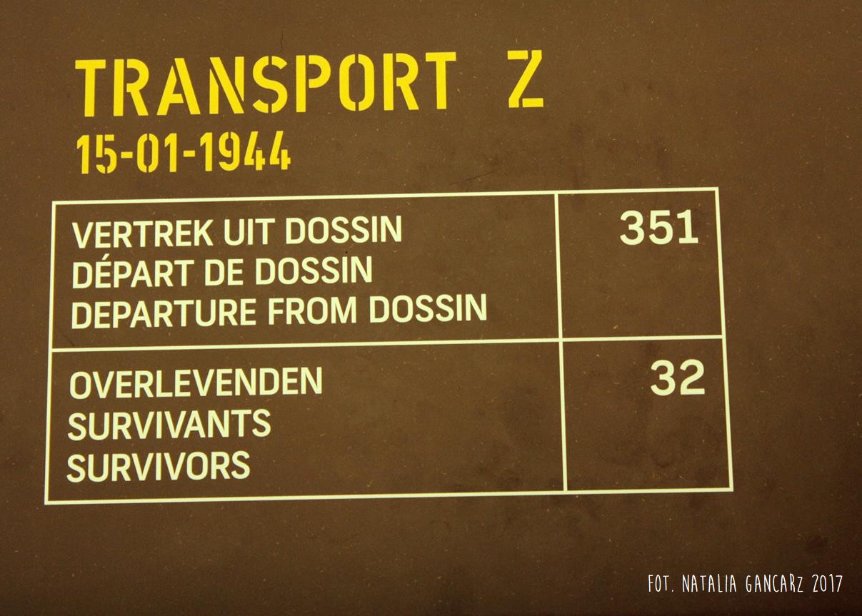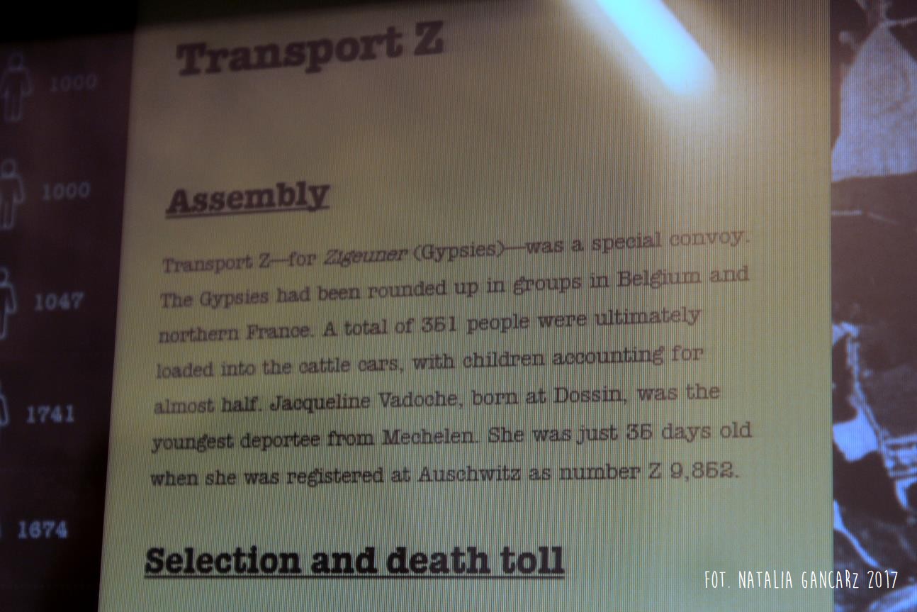 Kolejna plansza poświęcona Cyganom znajduje się w części związanej z transportami. Otóż Transportowi Z2 poświęcona jest tablica, na której pokazuje się m.in. fotografię cygańskiej rodziny oraz portret pięknej Marii Peterbost (Z2, nr 206). Najmłodszą z deportowanych Cyganów była Jaqueline Vadoche, urodzona w Dossin. W dniu deportacji miała 35 dni, a w Auschwitz została zarejestrowana z numerem Z-9 852.