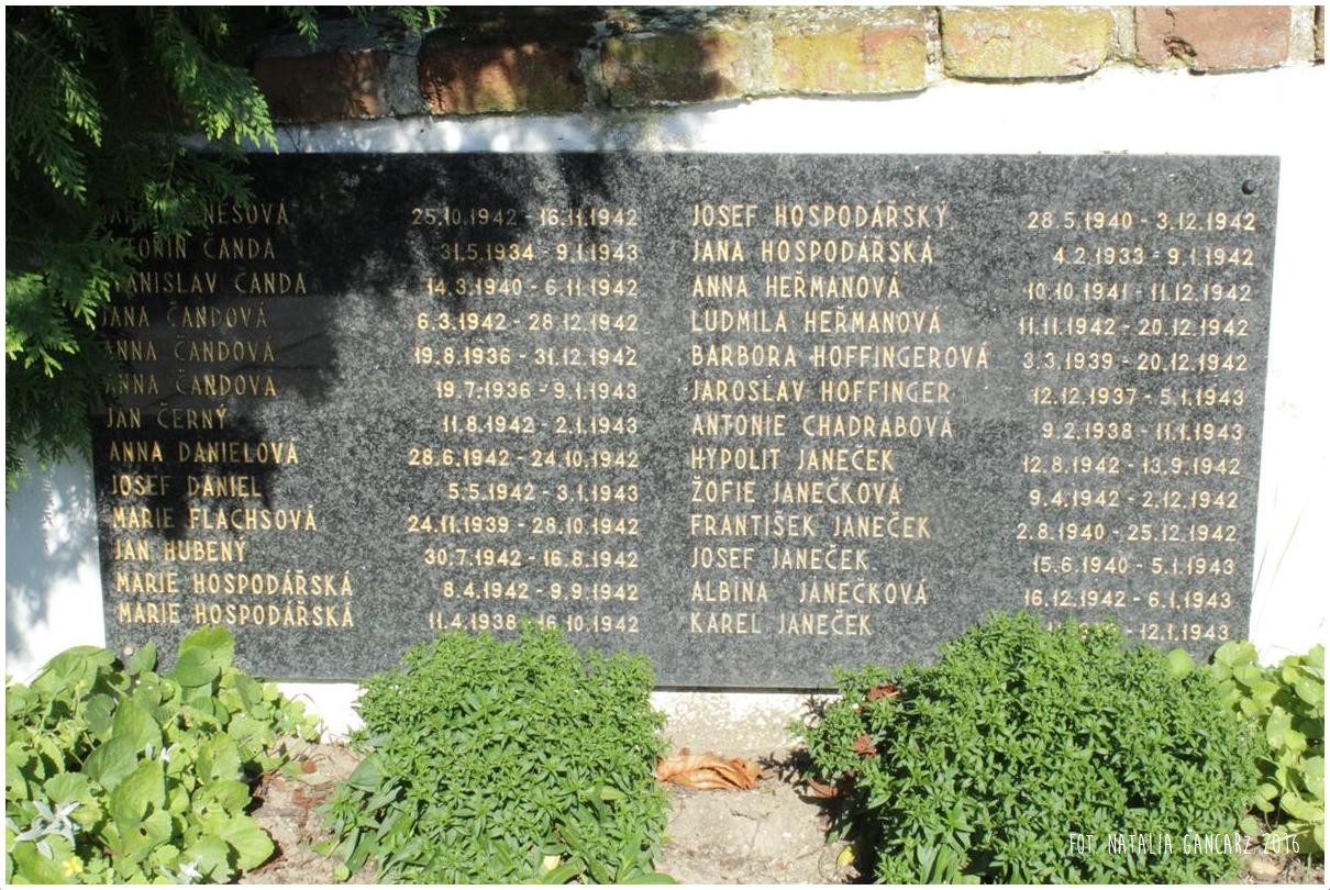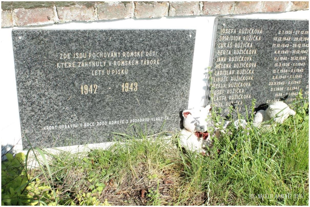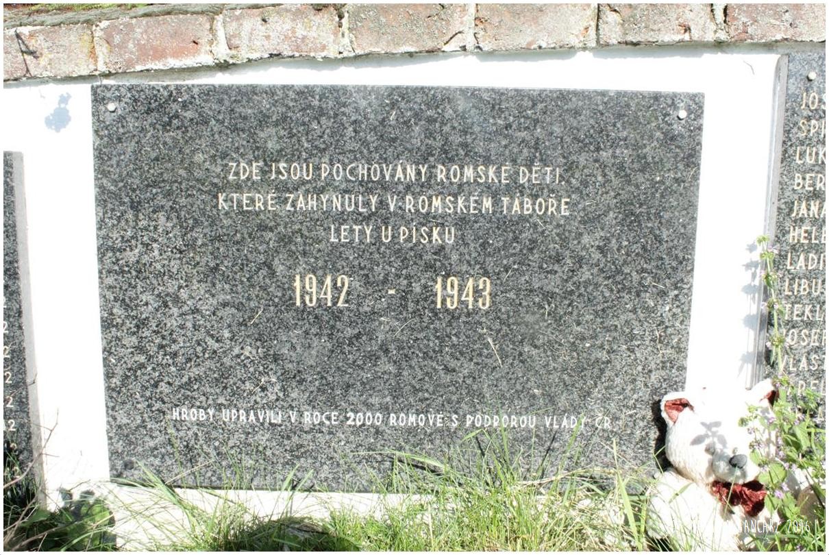 (Tu są pochowane romskie dzieci, / które zginęły w romskim obozie / Lety koło Pisku / 1942-1943 // Groby wyremontowali w roku 2000 Romowie z pomocą czeskiego rządu)