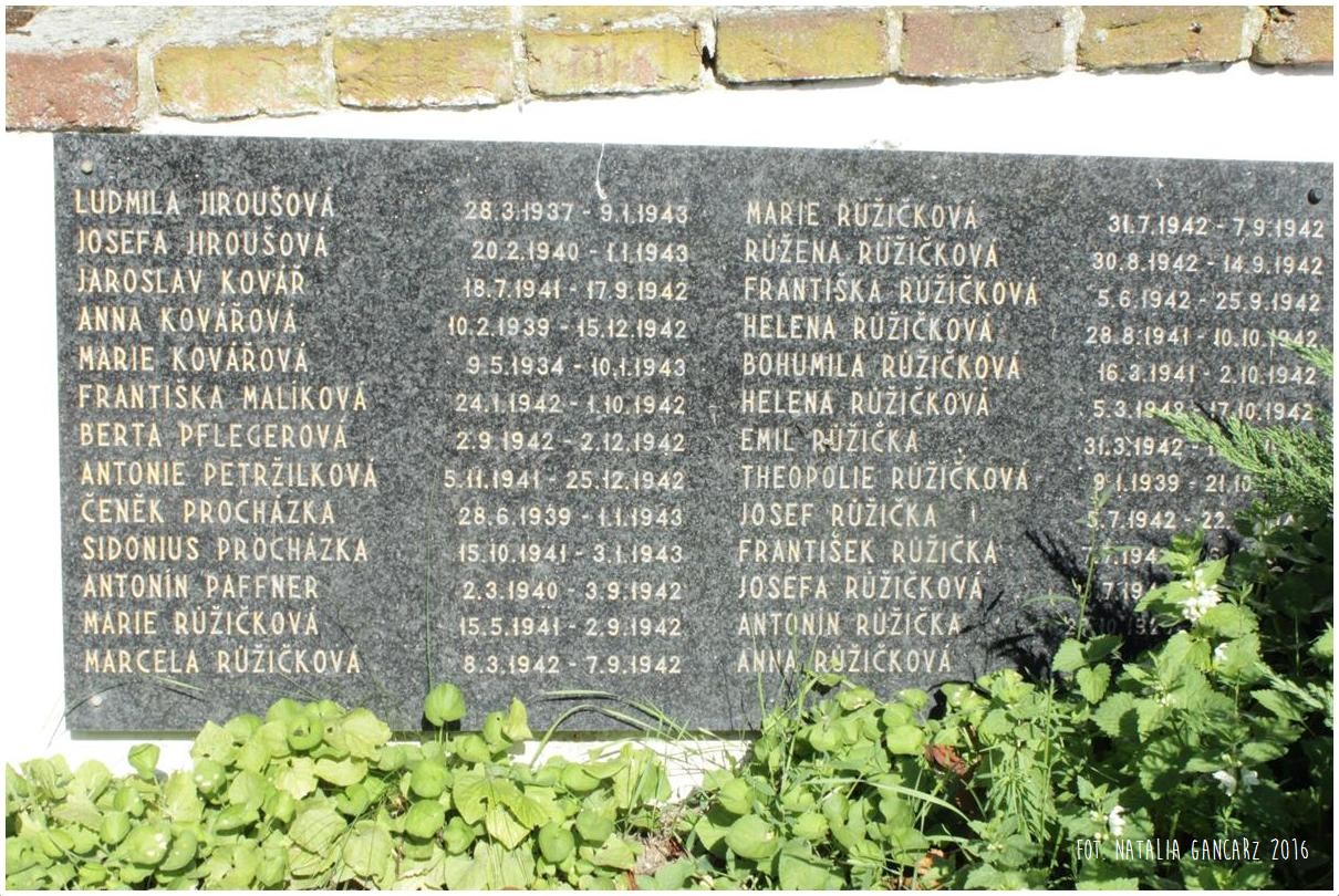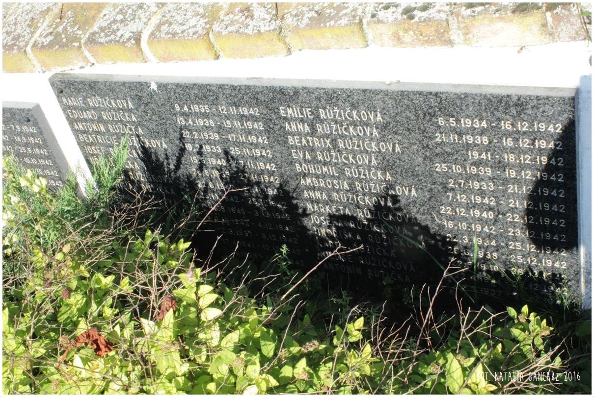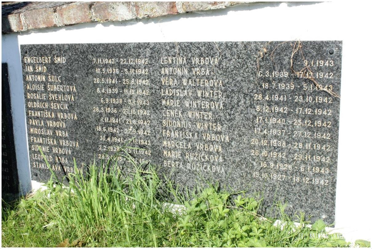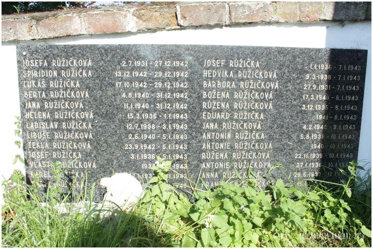 (Tu są pochowane romskie dzieci, / które zginęły w romskim obozie / Lety koło Pisku / 1942-1943 // Groby wyremontowali w roku 2000 Romowie z pomocą czeskiego rządu)