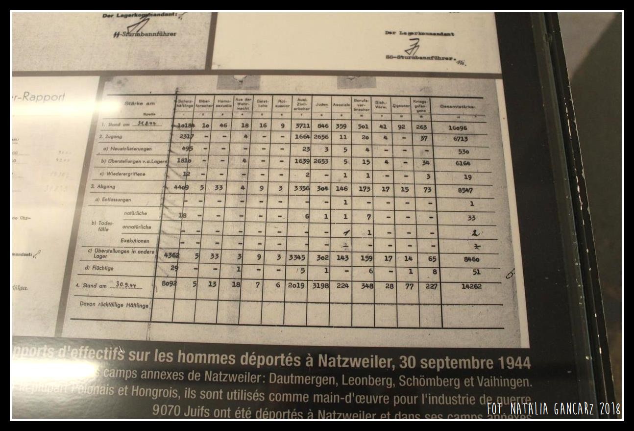 Na jednej z plansz znalazła się kopia tabeli, przybliżającej stan obozu na dzień 31.08.1944 i 30.09.1944. Z 92 Romów końcem sierpnia ich liczba zmniejszyła się do 77 końcem września. Spośród nich 14 zostało deportowanych do innego obozu, jeden zbiegł. W trakcie tego jednego miesiąca żaden Rom nie zmarł śmiercią naturalną, ani nie został zabity.