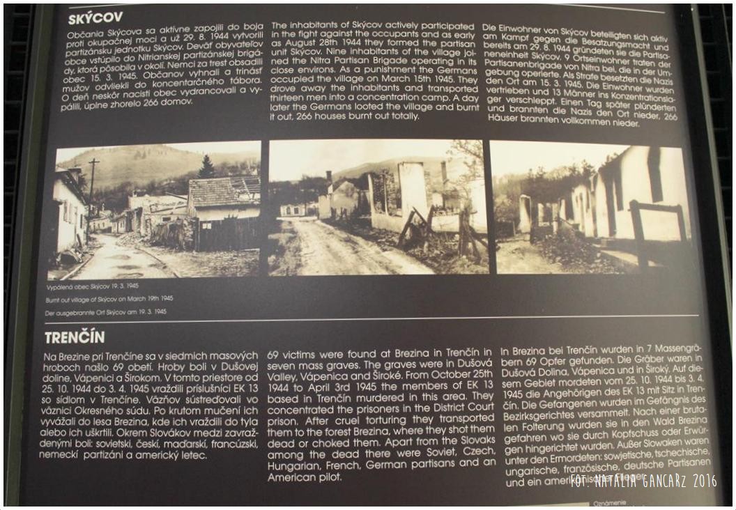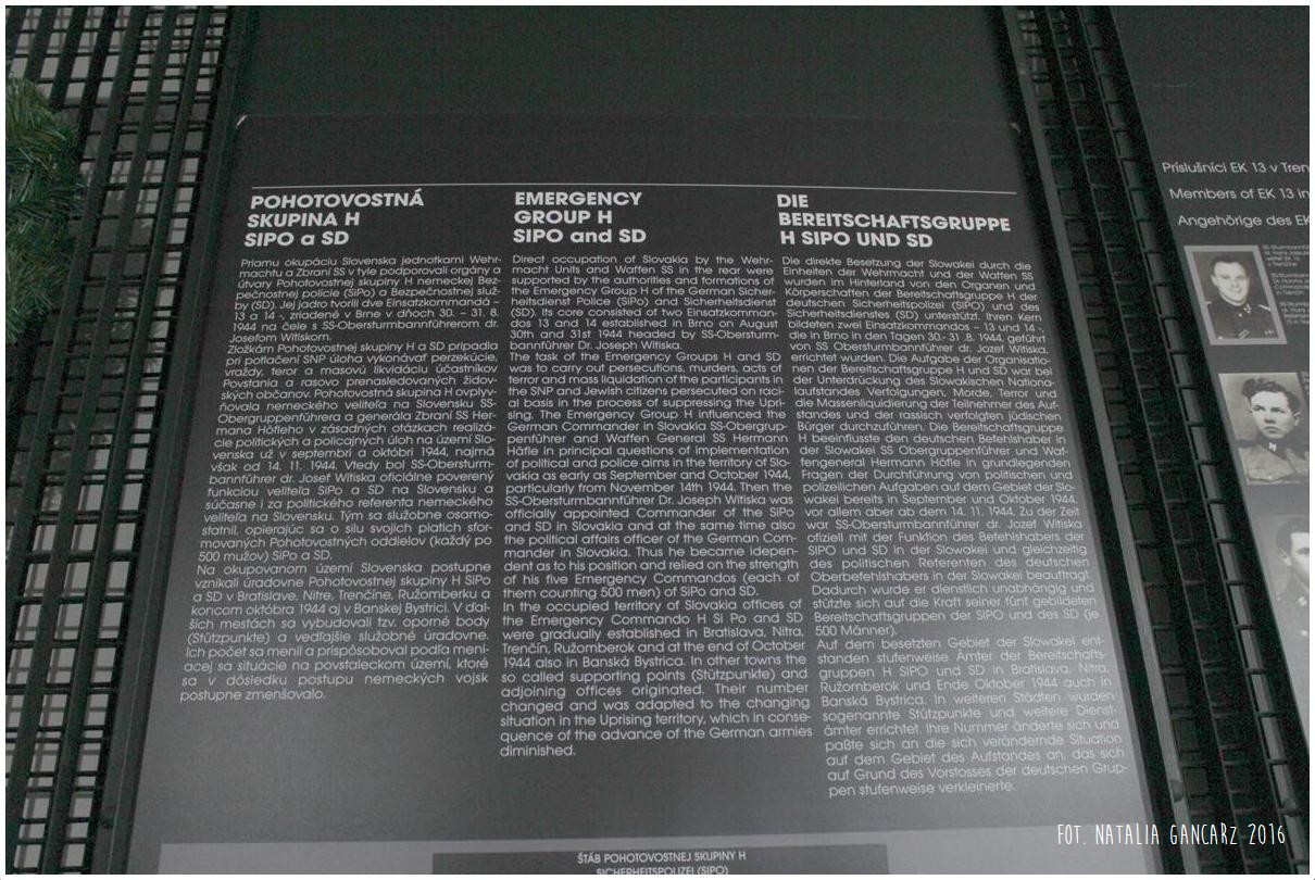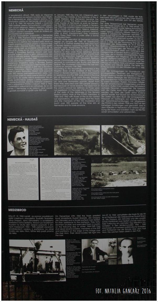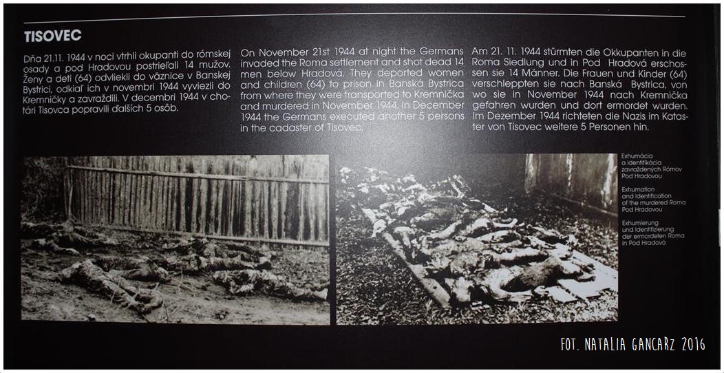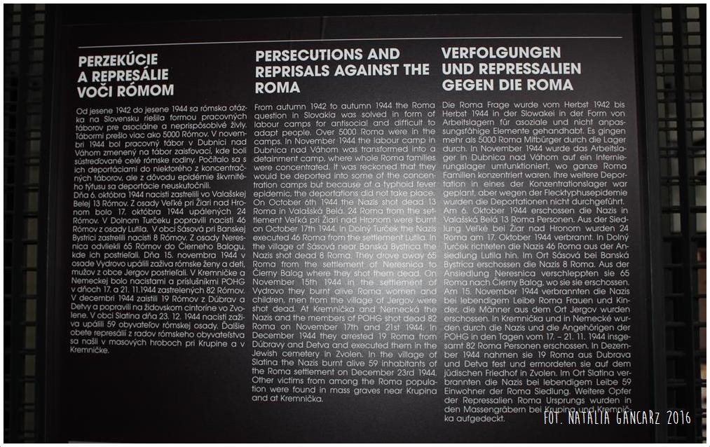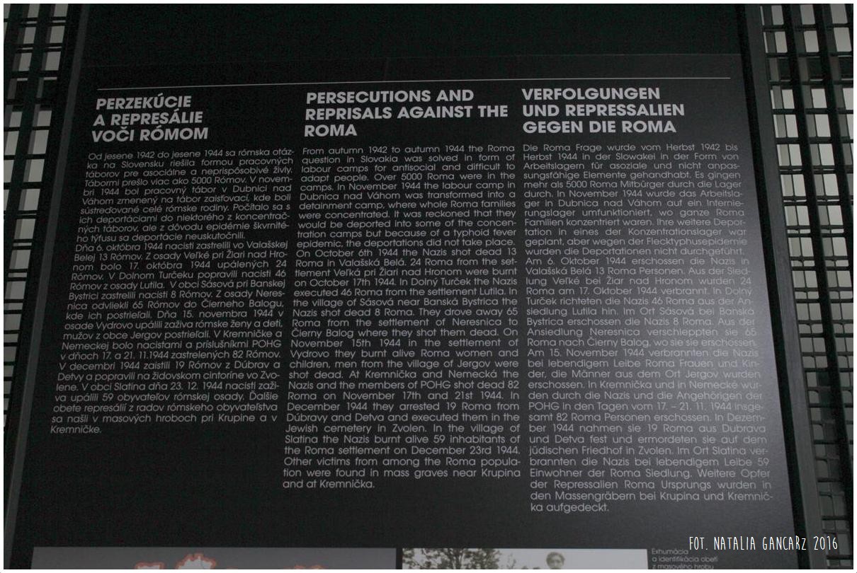Pomnik powstał w ramach słowackiego projektu Ma bisteren! Znajduje się wewnątrz niewielkiego budynku, będącego oddziałem Muzeum Słowackiego Powstania Narodowego, w którym eksponowana jest wystawa o reperkusjach w czasie II wojny światowej na Słowacji. Na ekspozycji można znaleźć również informacje o prześladowaniach Romów (jęz. słowacki, angielski, niemiecki). Pomnik dostępny w godzinach otwarcia muzeum.